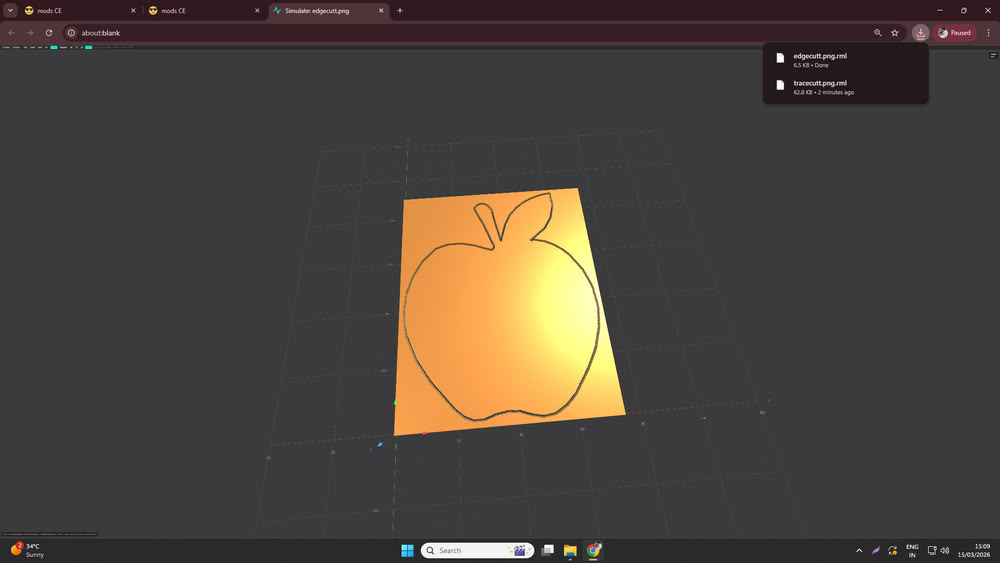 This file is then used for milling the PCB, and the generated preview shows how the PCB simulation will look after the milling process.