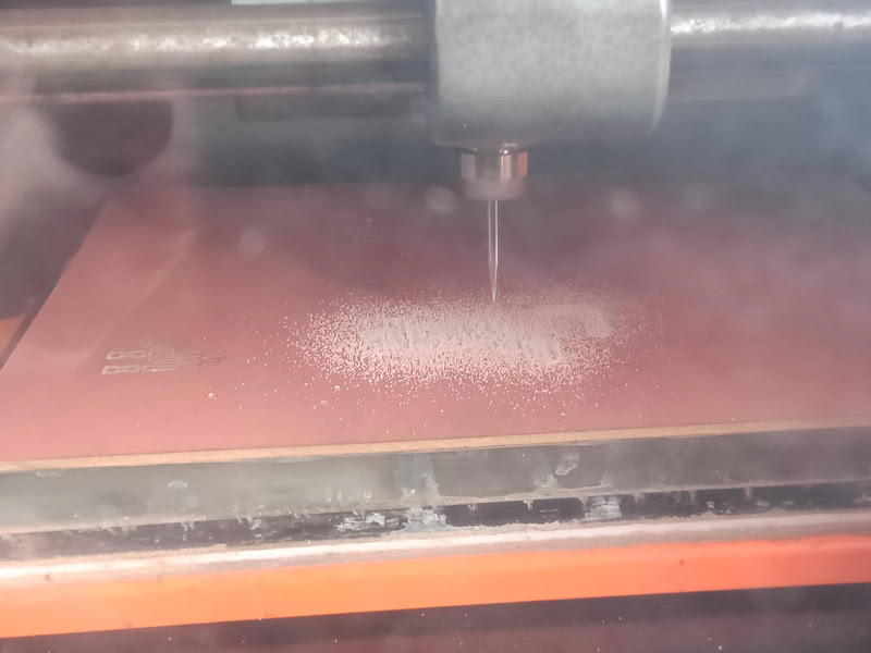Before starting the milling process, the software displays a simulation preview, allowing us to check how the PCB outline will be cut on the machine.