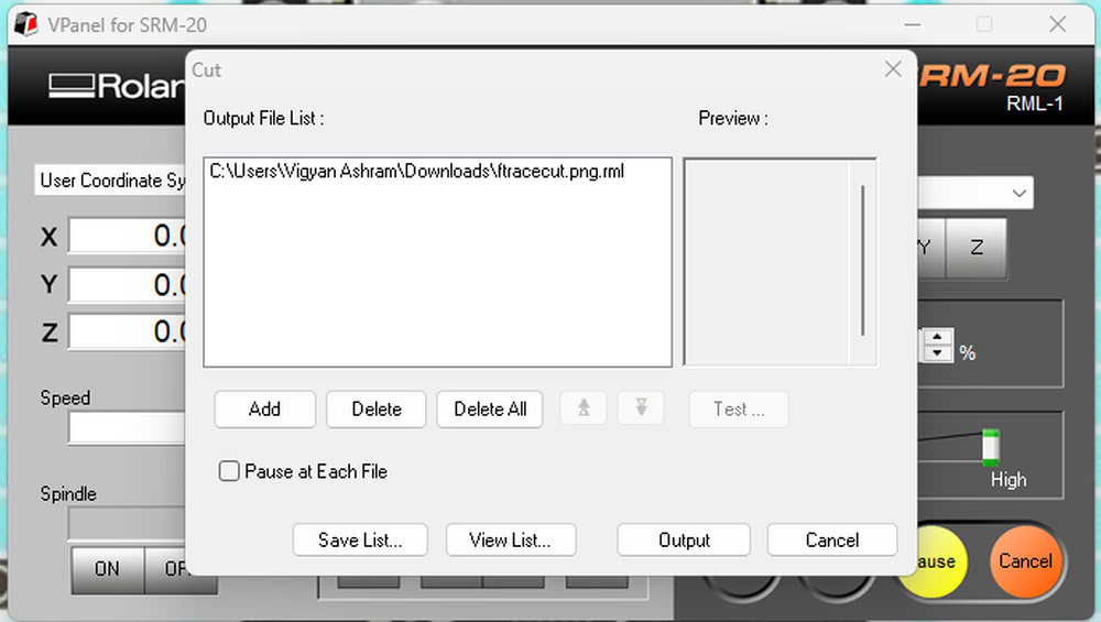 . Finally, I clicked on Calculate, and the software generated and saved the .rml file.