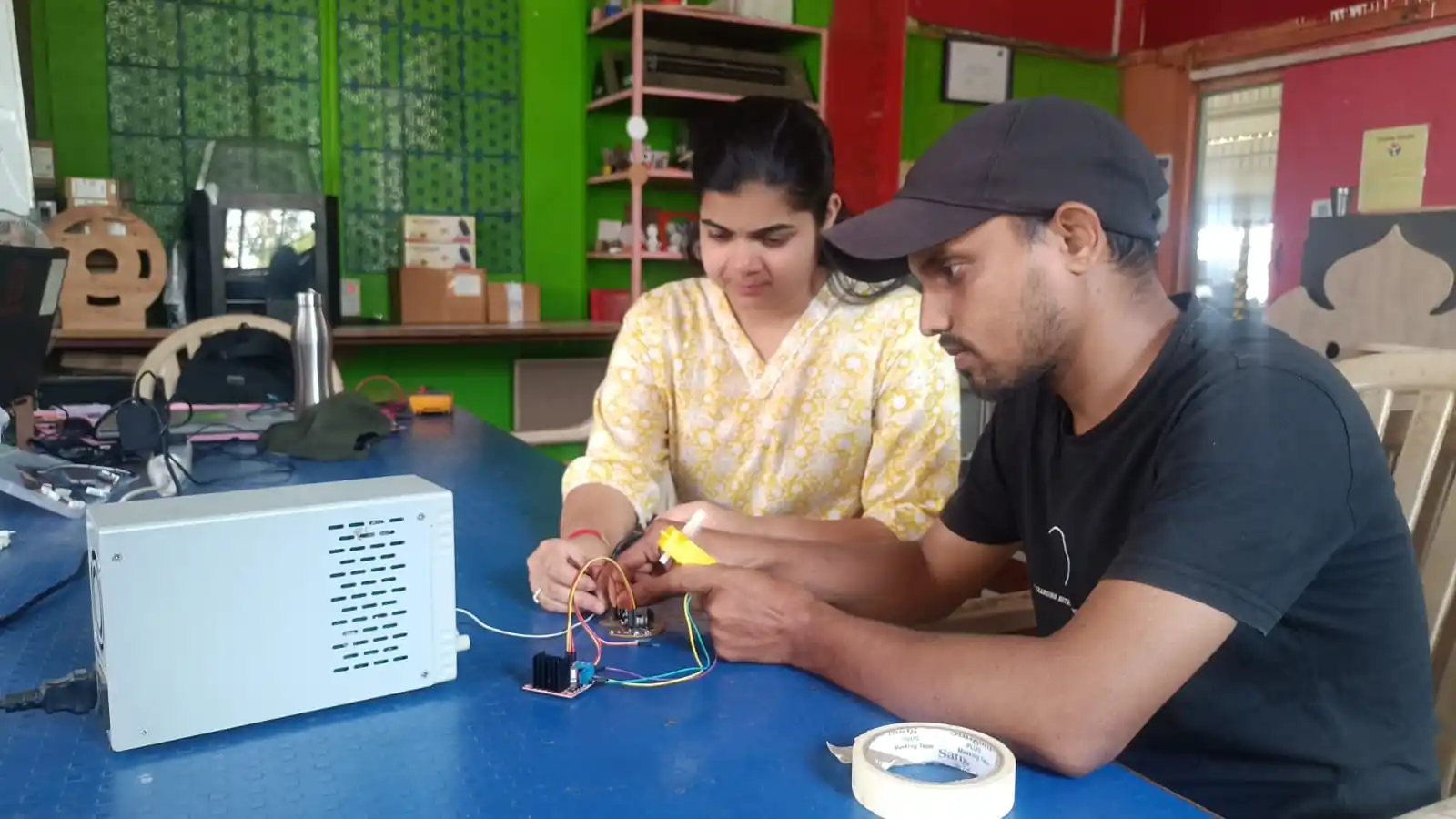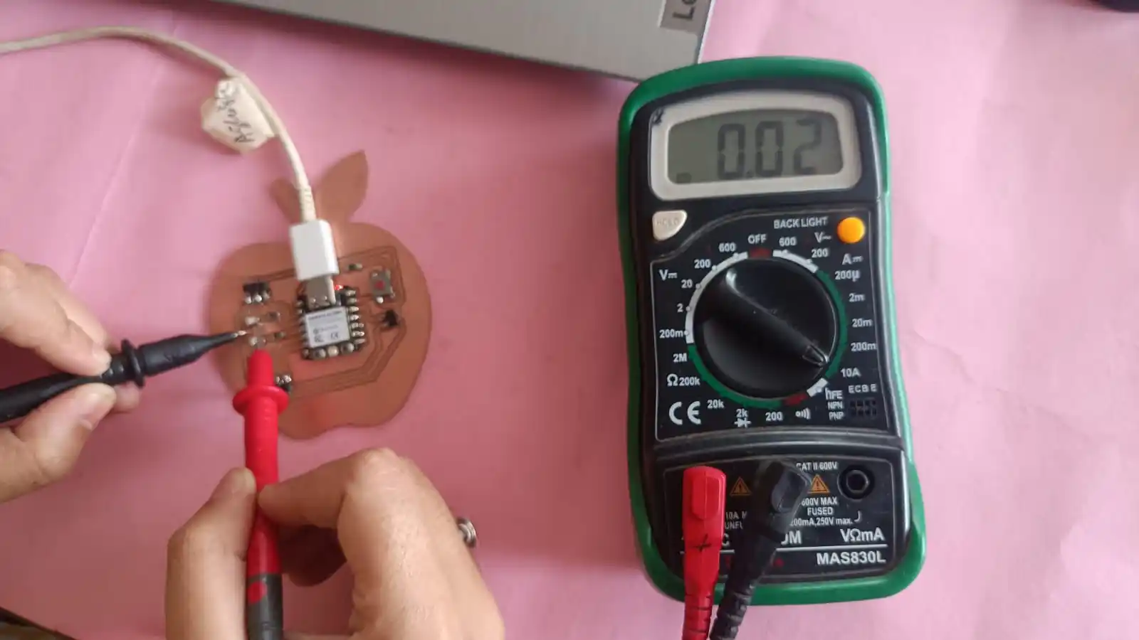 we are use simple blink code in arduino ide. this code runing the led turns on and turn off, we are measured the voltage and current to understand how mcch power the led consumes.