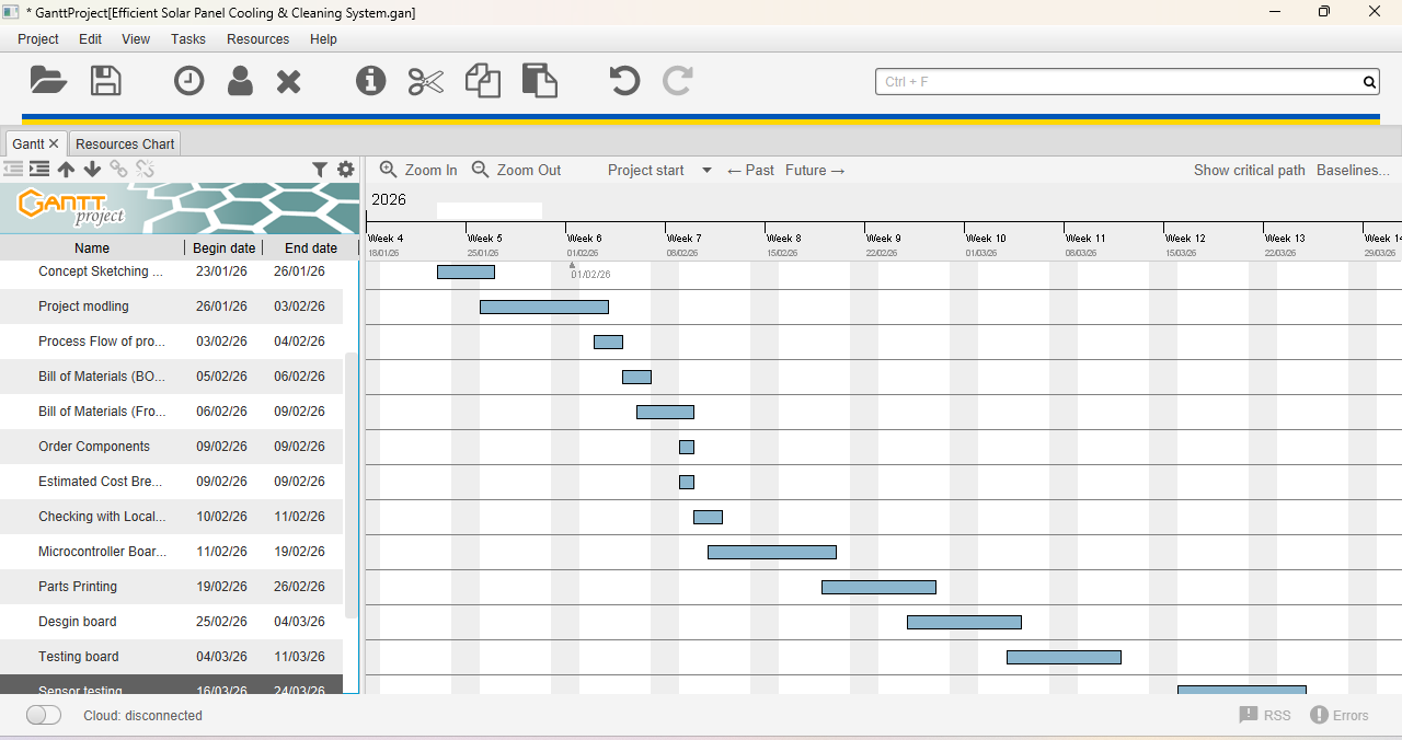 For project development, I used a Gantt chart. I downloaded a Gantt chart template from an official website. In this chart, I planned all my tasks according to my timeline and tracked each task until completion. The chart clearly shows how my work progressed over time.