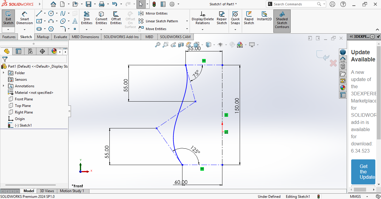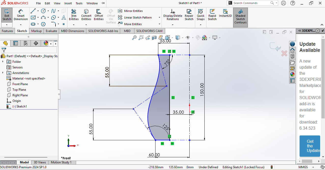 Then I chose the Front Plane to start my work. After that, I drew a sketch according to the required dimensions.