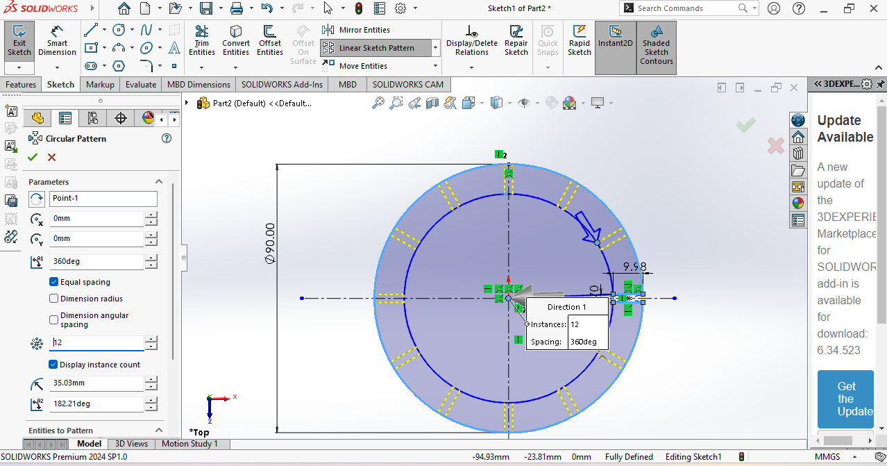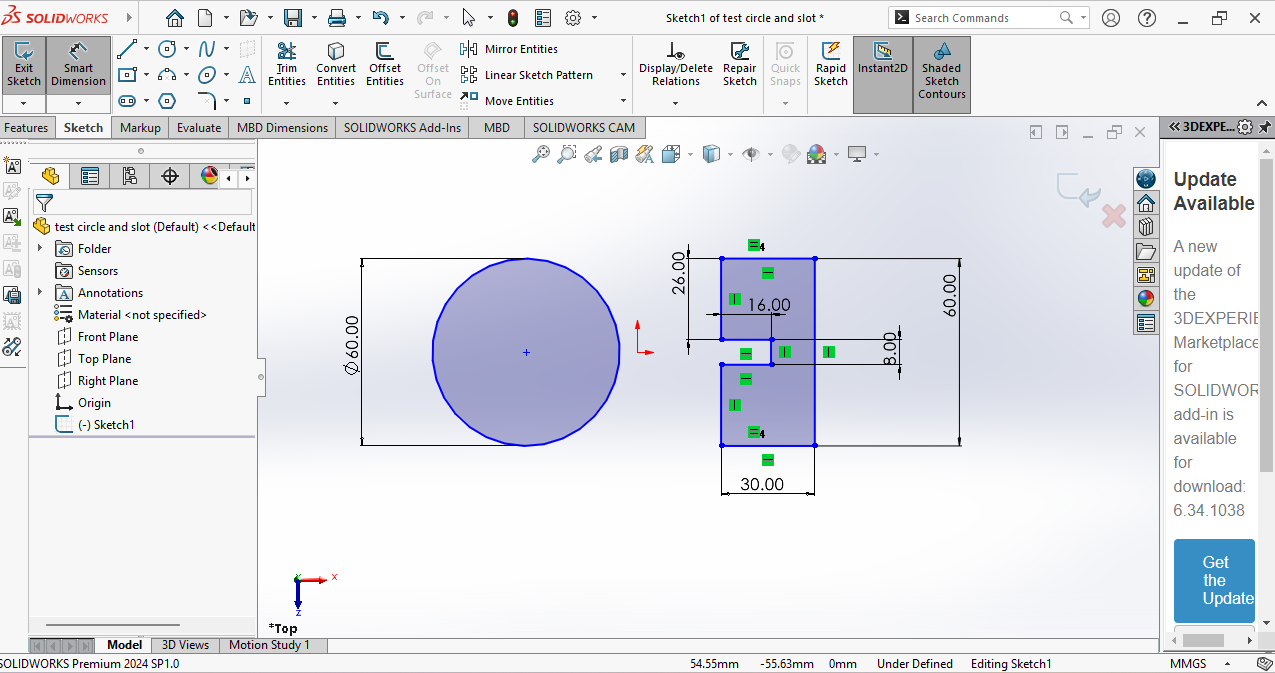 I followed the same process by creating a new sketch and selecting the Top Plane. Then, I created a circular shape and made a slot using the Circular Slot option. After that,