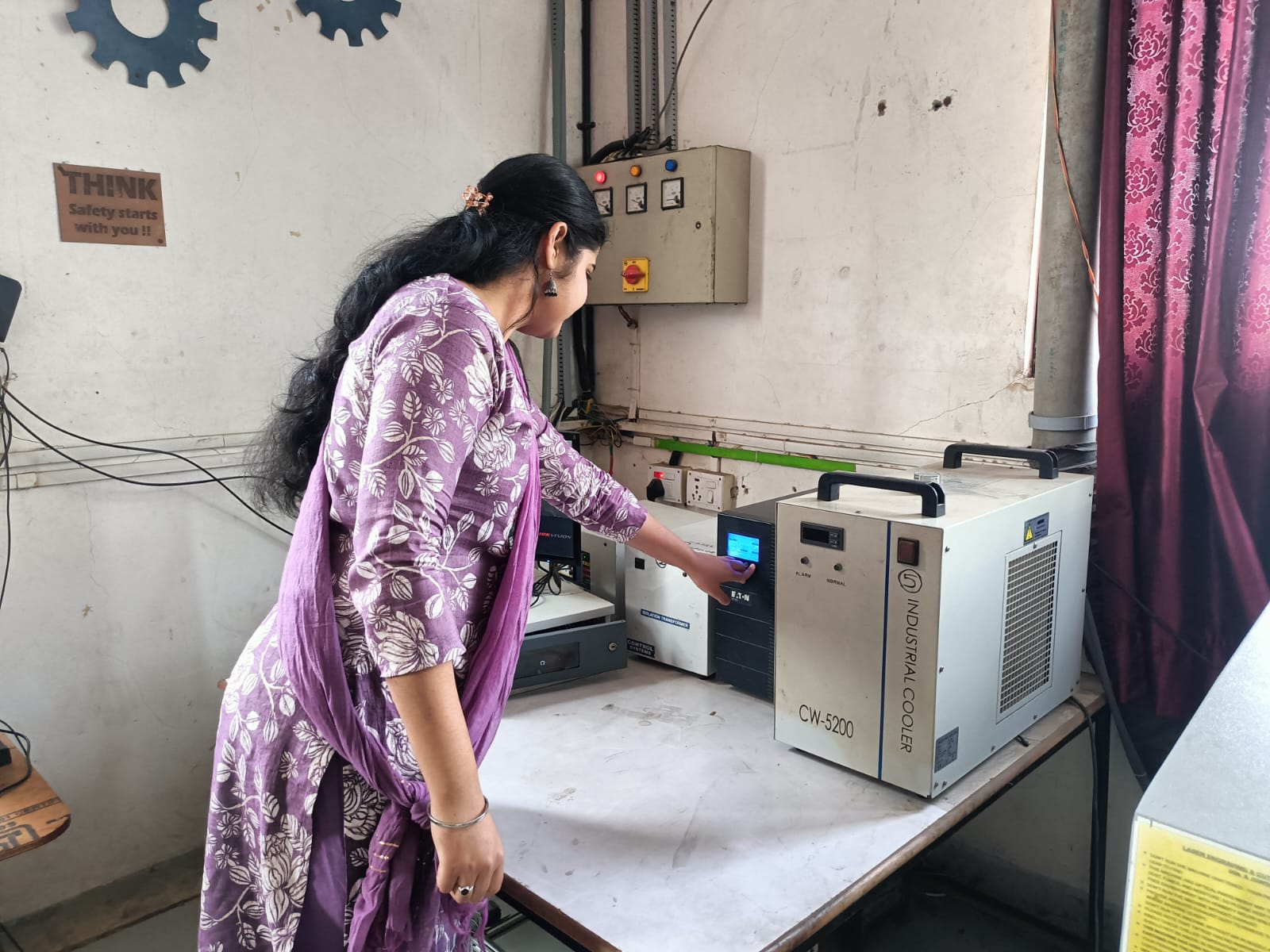 Laser cutting machine in FABLAB at Vigyan Ashram