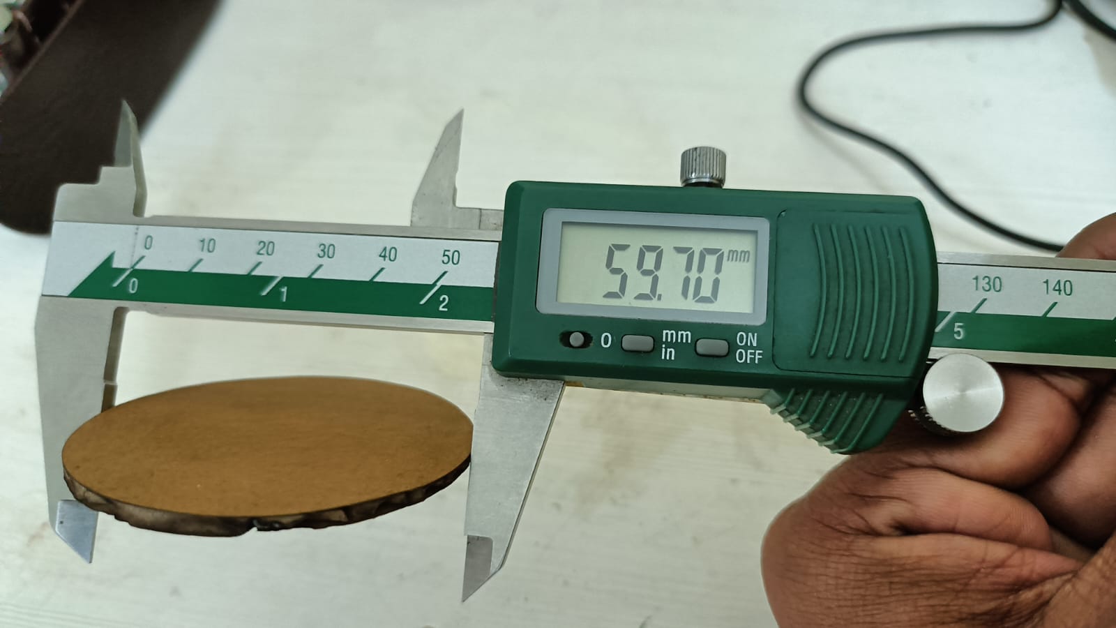 The designed circle diameter was 60 mm, but after laser cutting, the measured diameter was 59.70 mm.