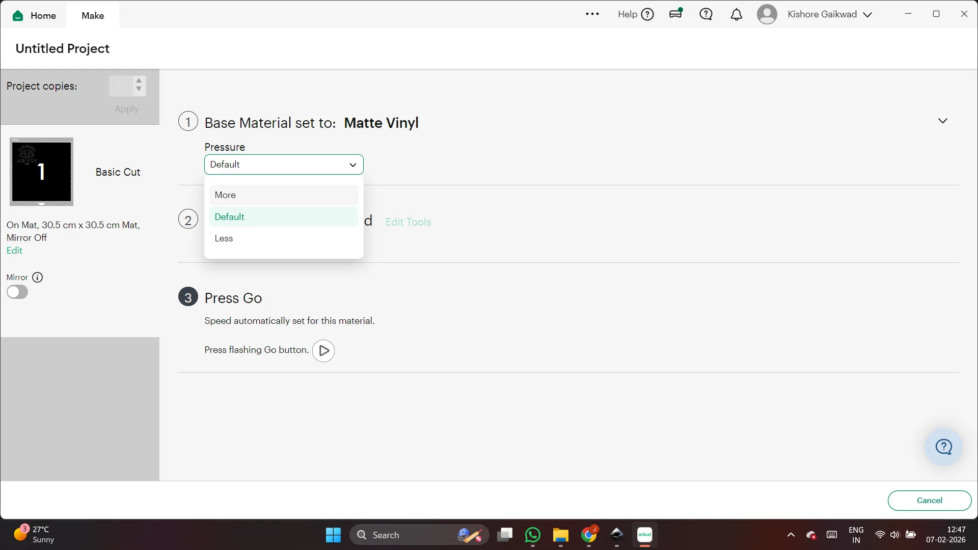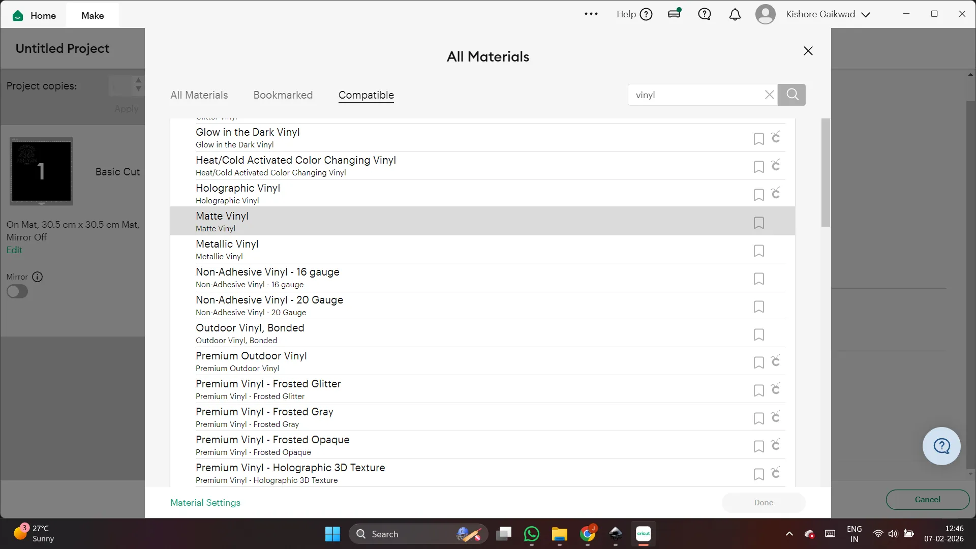 Then I chose the material type as Matte Vinyl, because I used matte vinyl paper for cutting.