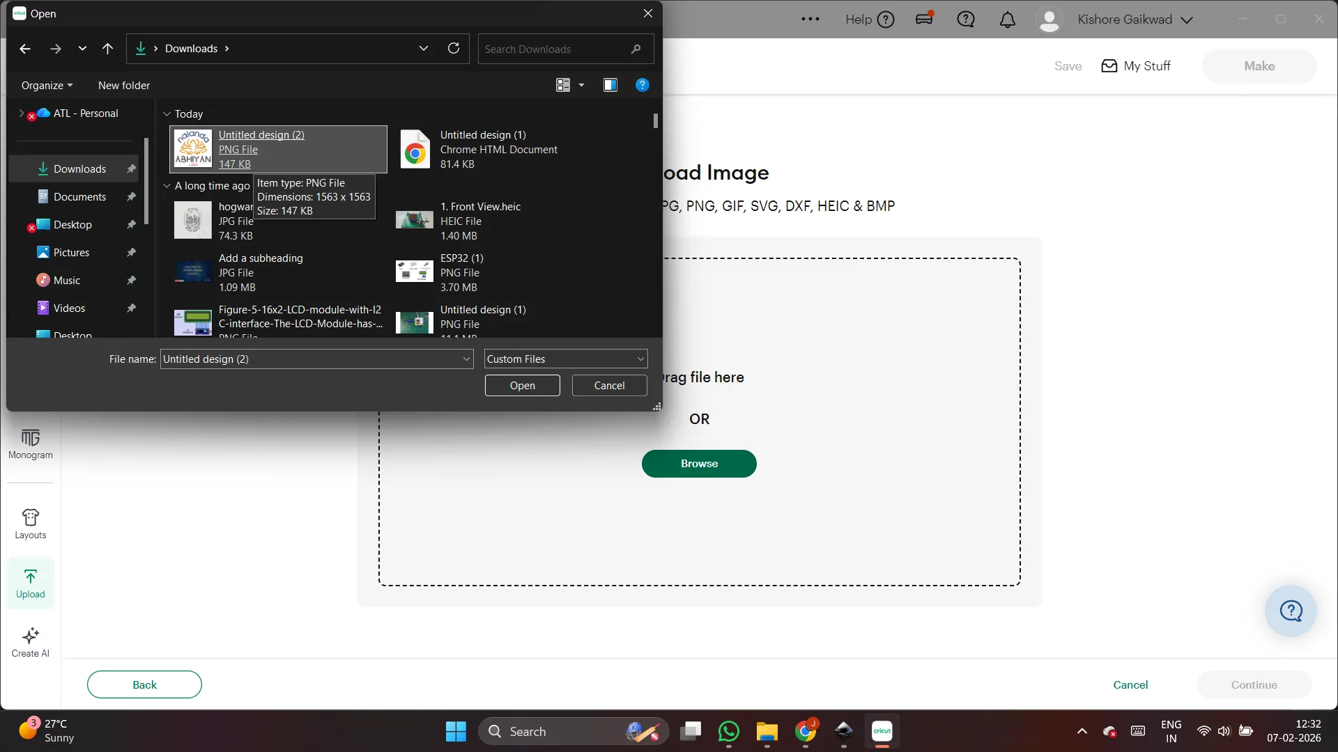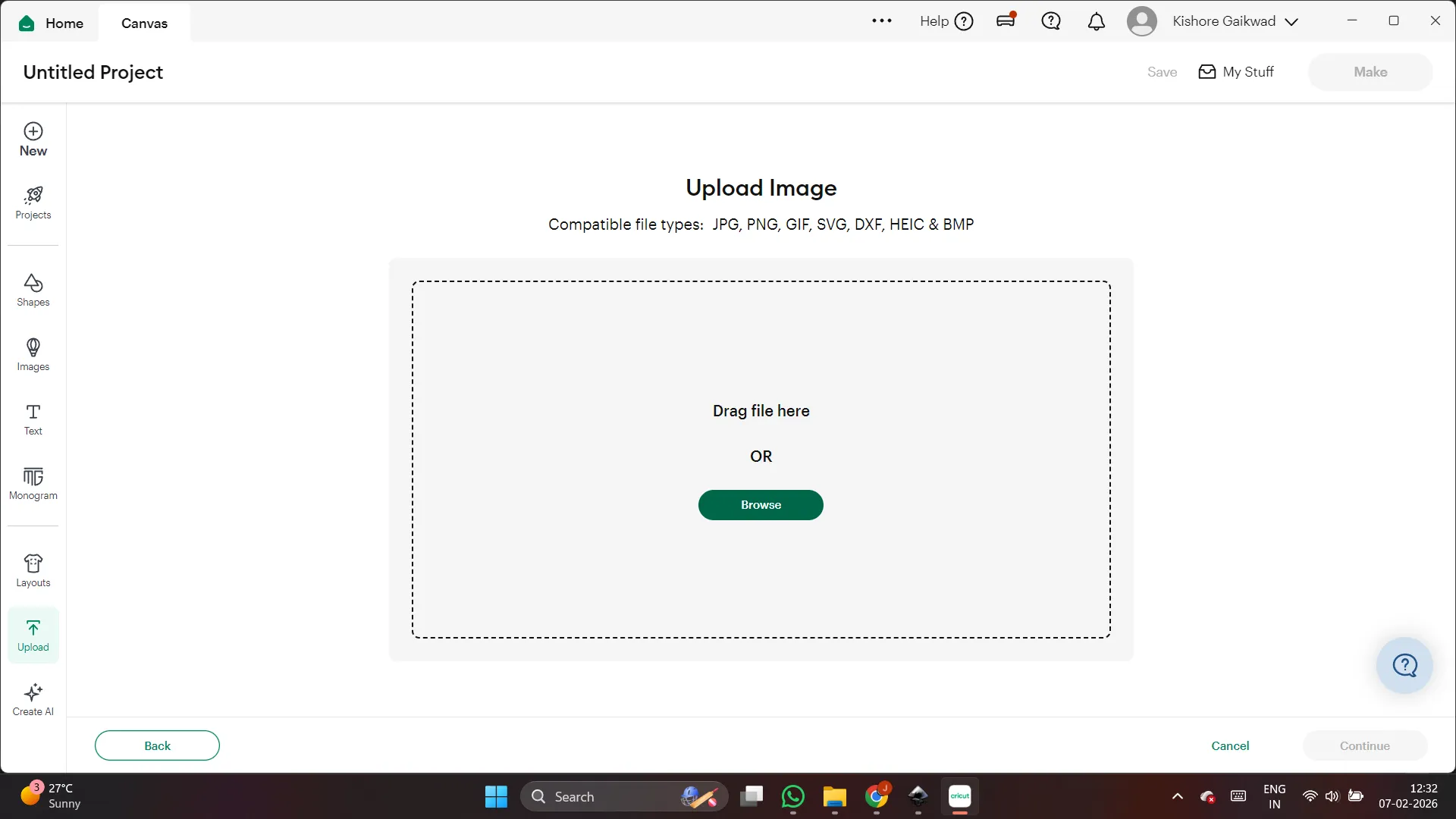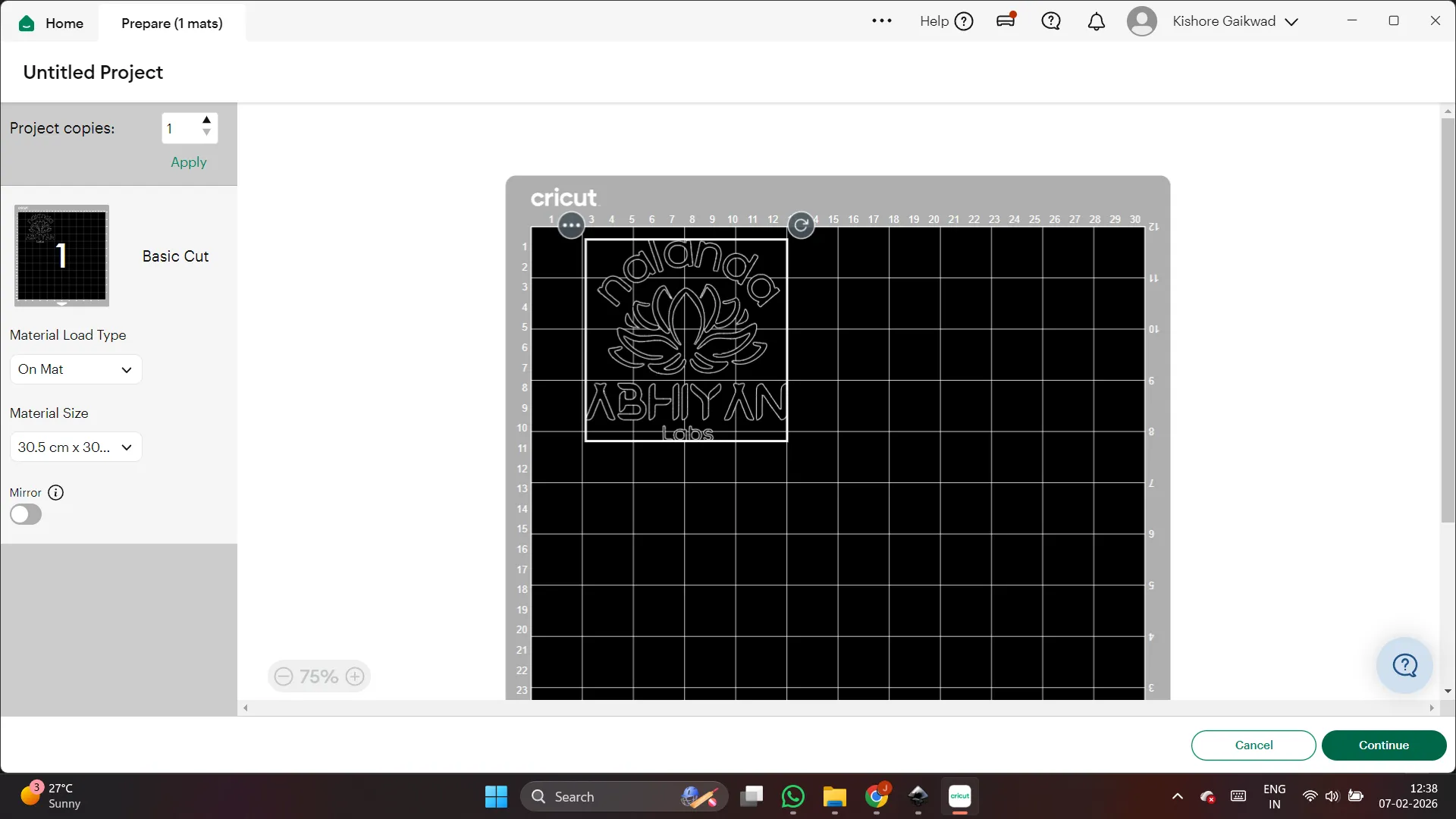 After importing the design, I checked the size and adjusted it if needed. Finally, I placed the design properly in the workspace and prepared it for cutting.
