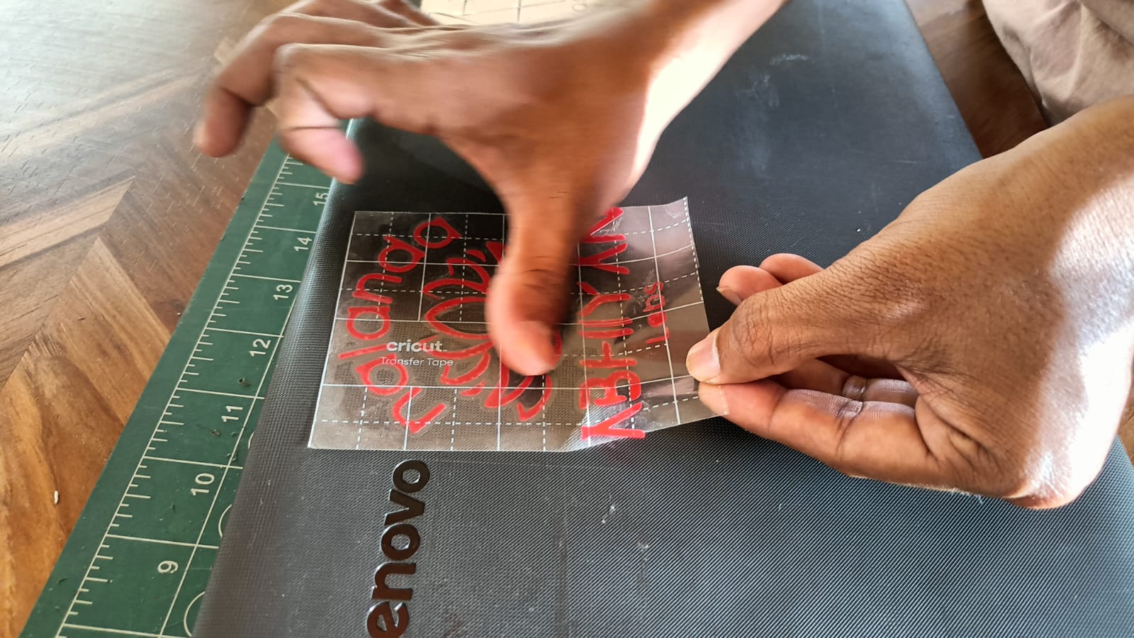 I carefully placed the vinyl sheet on the cutting mat and made sure it was aligned properly so it would not move during cutting.