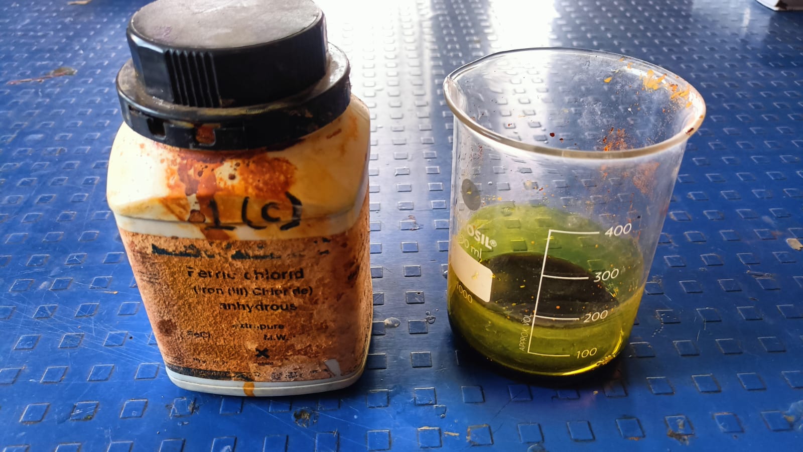 We also used the required tools like gloves, a container, and safety glasses during the process.