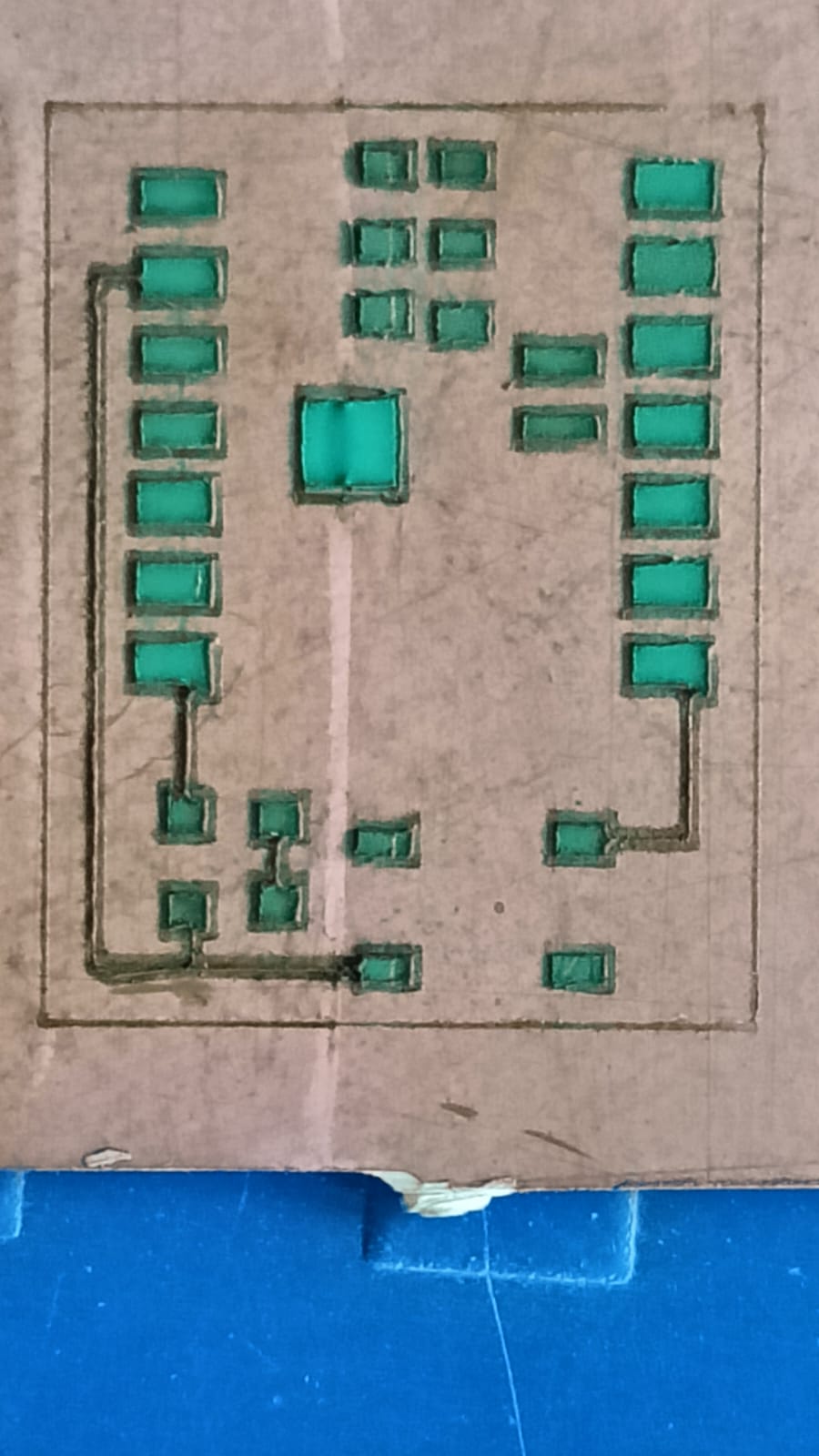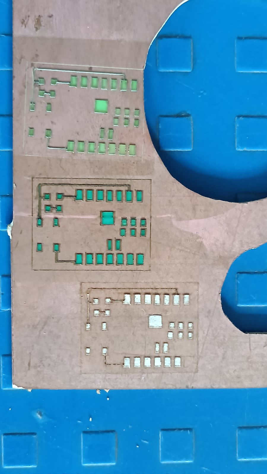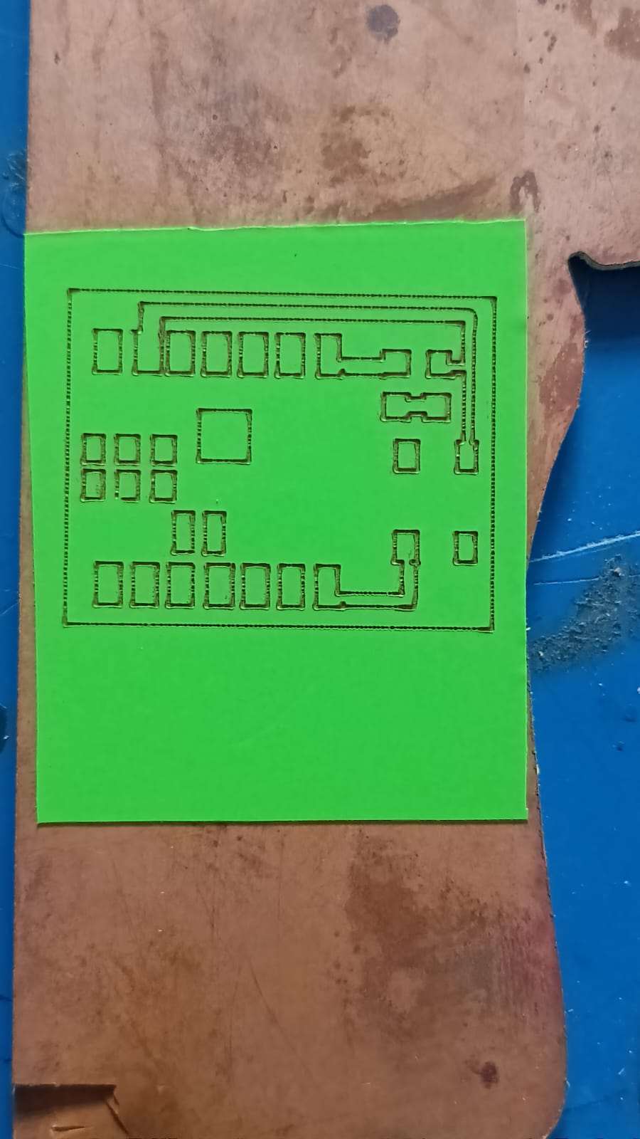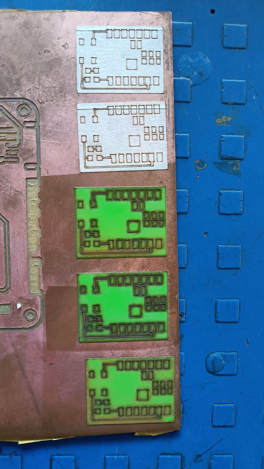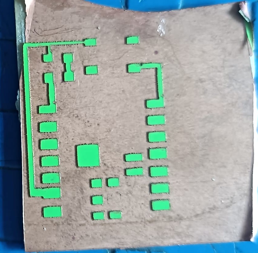 This step helped us achieve the final PCB traces on the copper plate.