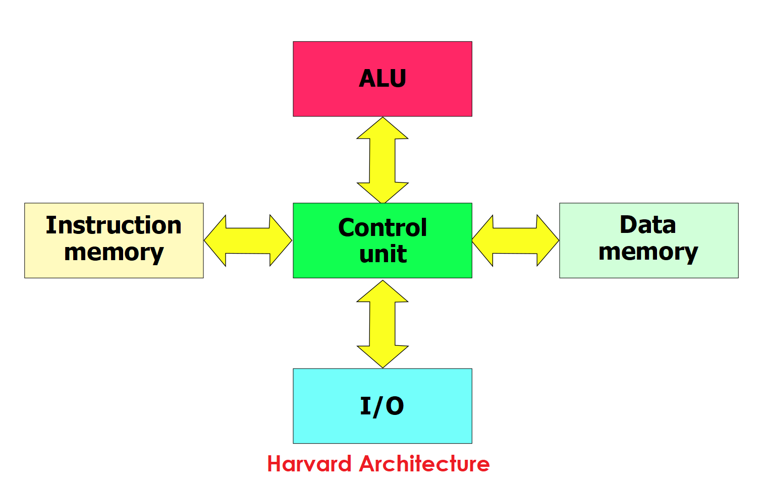 In Harvard architecture, the microcontroller has two different memory paths — one for instructions (code) and one for data. So it can read both at the same time, making it faster.