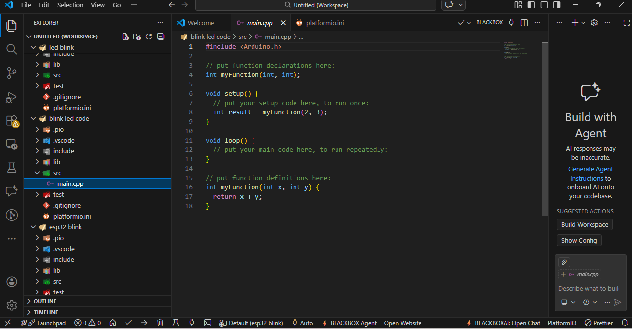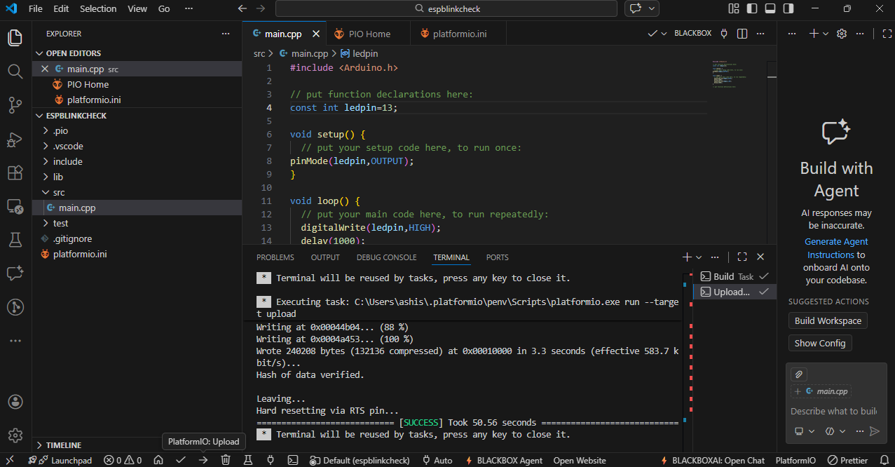 I also used VS Code to program my ESP32 module and blink the LED.