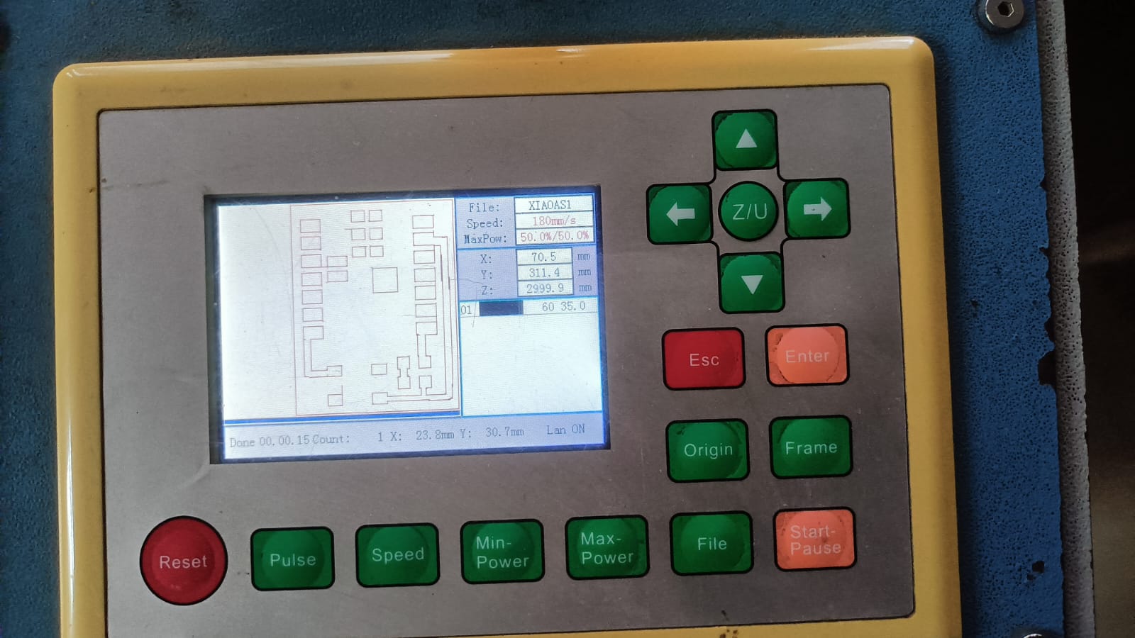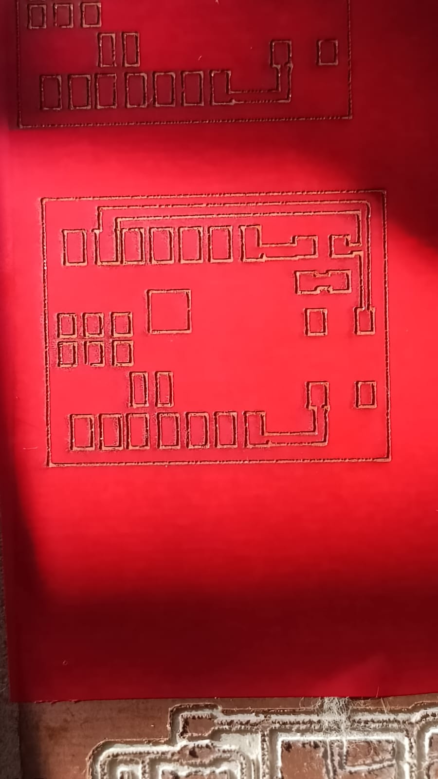 During this step, we made a small mistake — we forgot to invert (mirror) the PCB image before sending it to the laser machine.