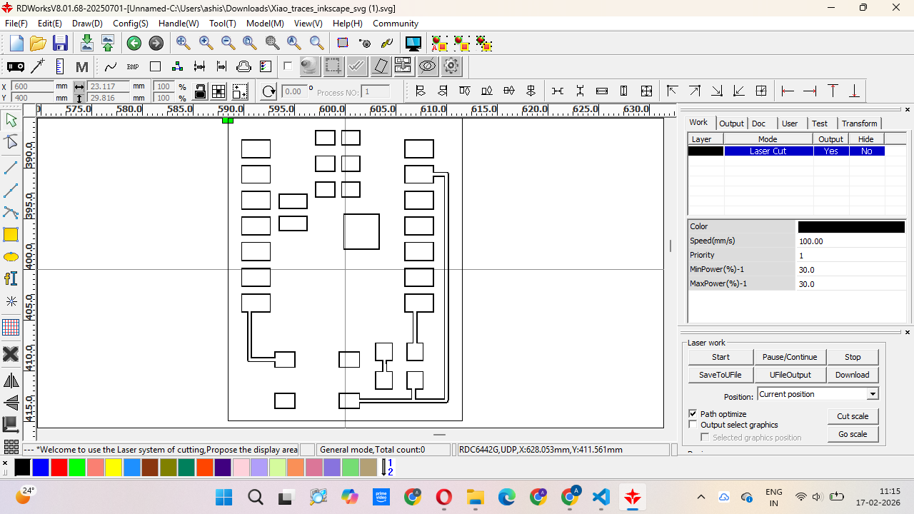 Step 3: After preparing the vector file, we imported it into RDWorks software and converted the design into a machine path for the laser cutter.