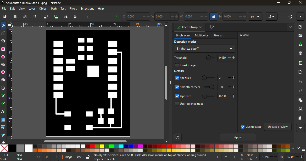 Step 2: Our plan was to use the laser machine during this process. So first, we converted the PCB trace image into vector format using Inkscape software.