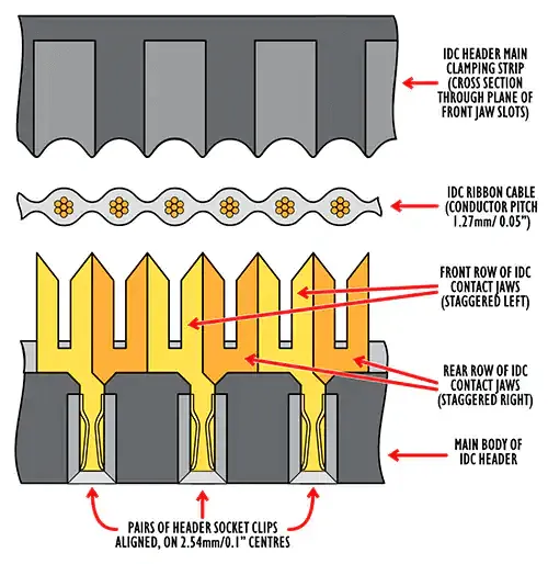 It allows for easy and secure connections without the need for soldering. IDC converters typically have a row of pins that match the wires in the ribbon cable, and they can be easily attached or detached as needed.