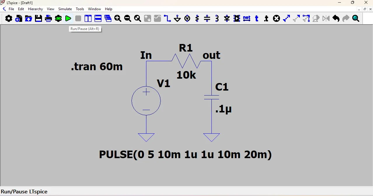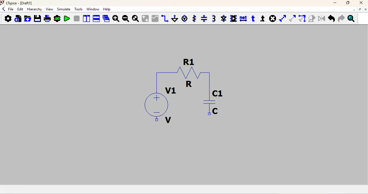 First, I go to the tools section and selected the voltage source, resistor, and capacitor. Then, I arranged all the components properly and connected them using the wire tool.
