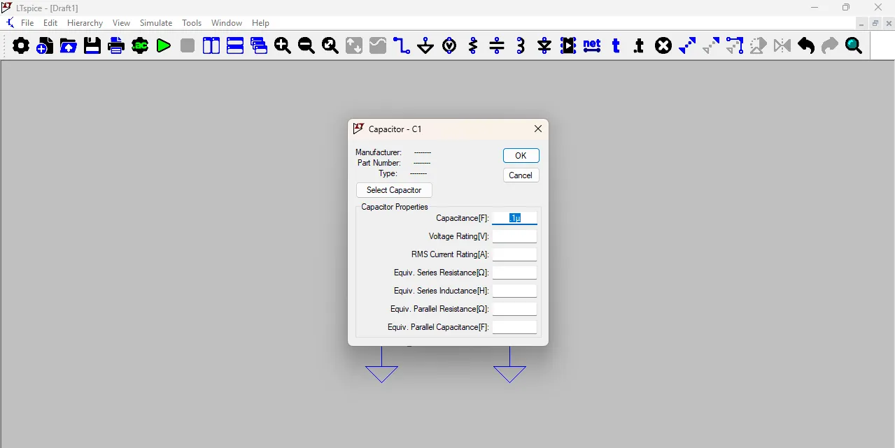 Right-click on the capacitor symbol, and a small window will open where you can enter the capacitor and resistor value Also, go to the Net Label tool and label the circuit nodes as input and output. As shown in the image below.