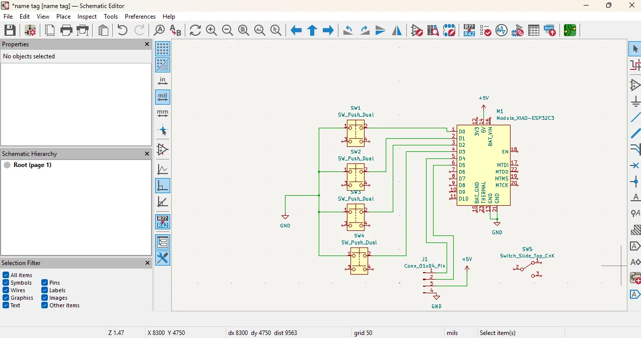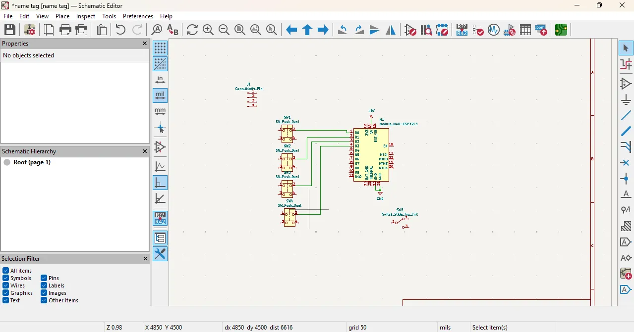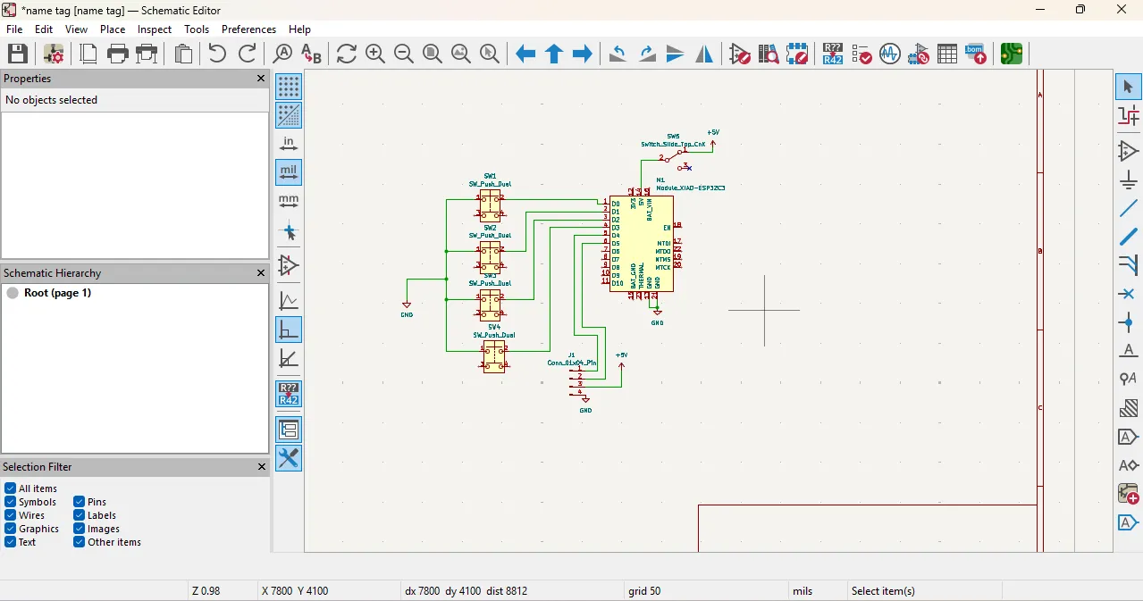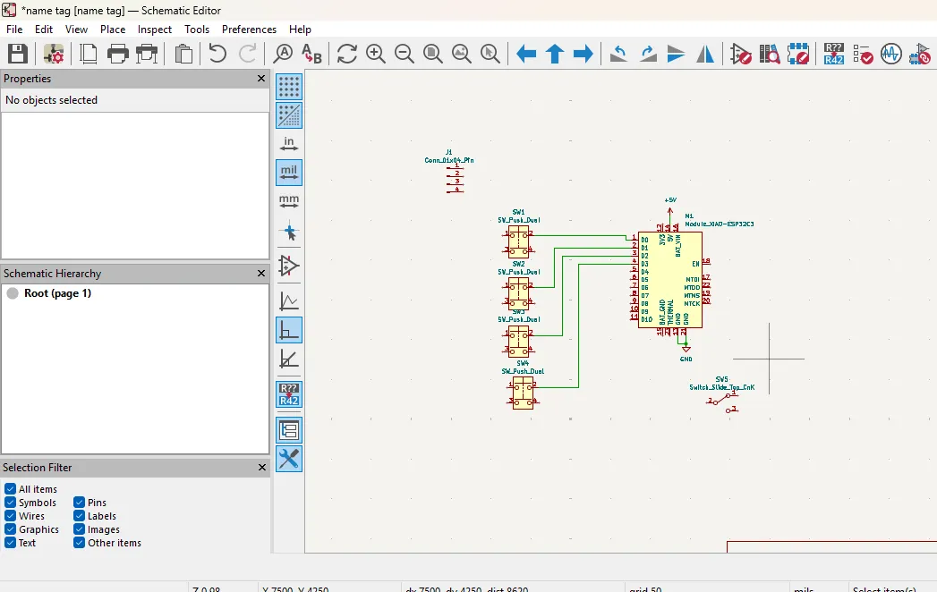I chose KiCad for PCB design because it is a powerful and widely used EDA tool that offers a comprehensive set of features for schematic capture and PCB layout.