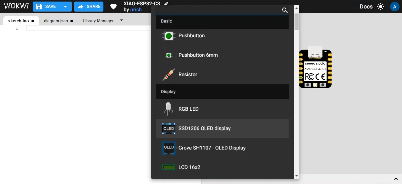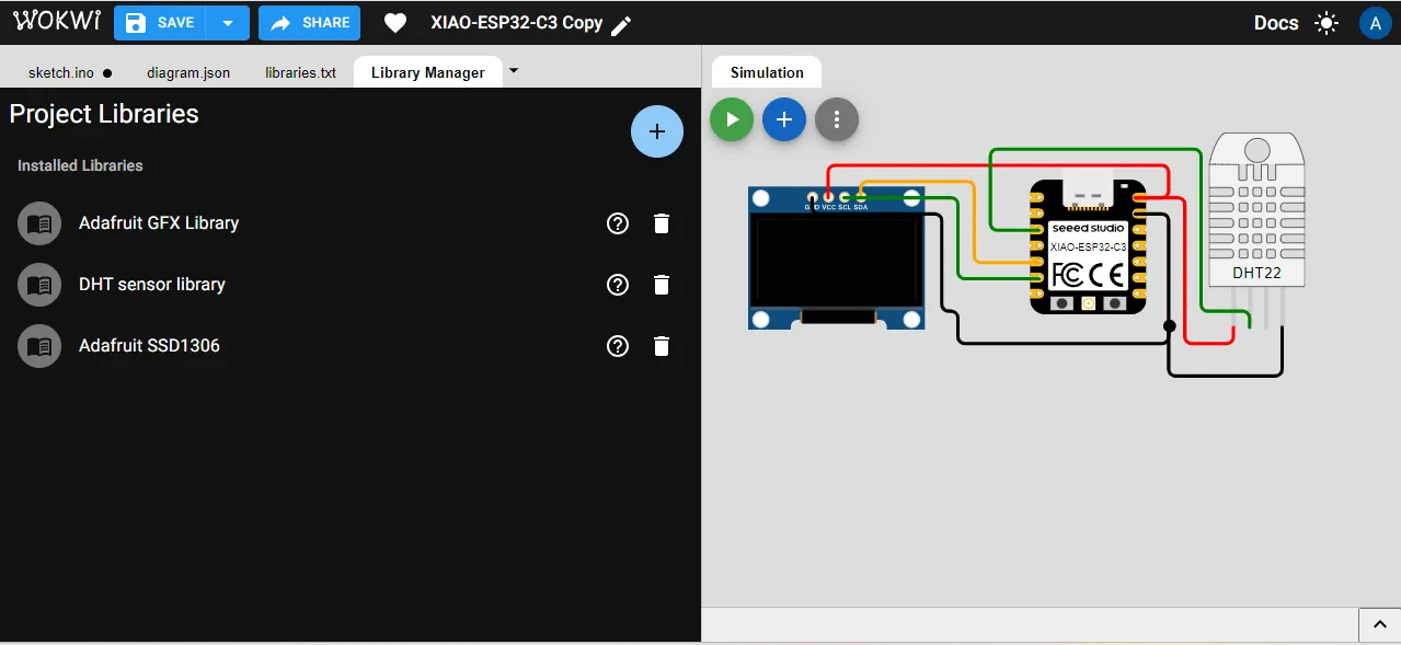 In my project, I am using a DHT sensor as an input device and a display module as an output device, so I want to simulate the system with ESP32-C3, DHT, and display.