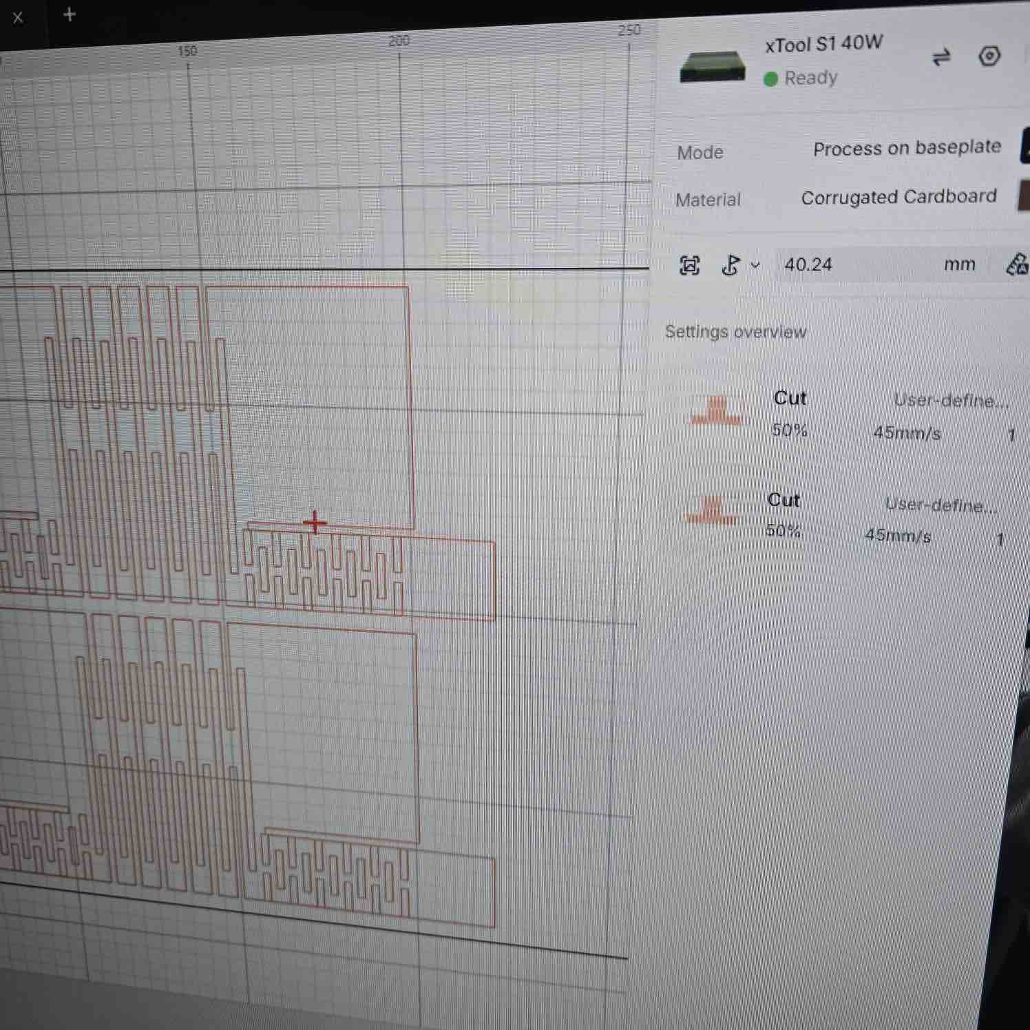 09| I imported to file to the xTool Studio and set the speed to 45 and power to 50