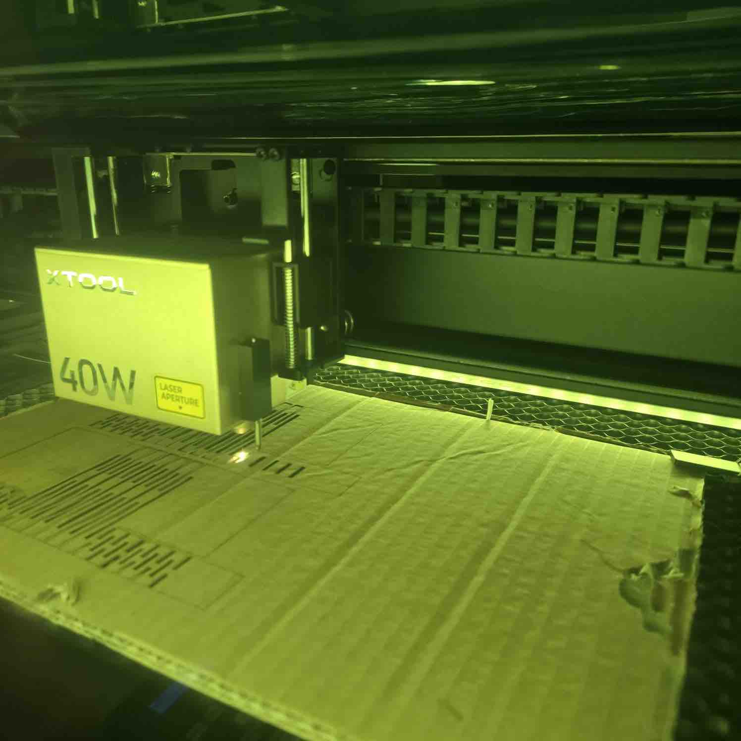 06| Fixing the cardboard on the bed to make sure it does not move during the cut