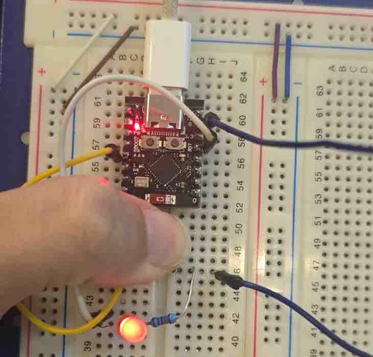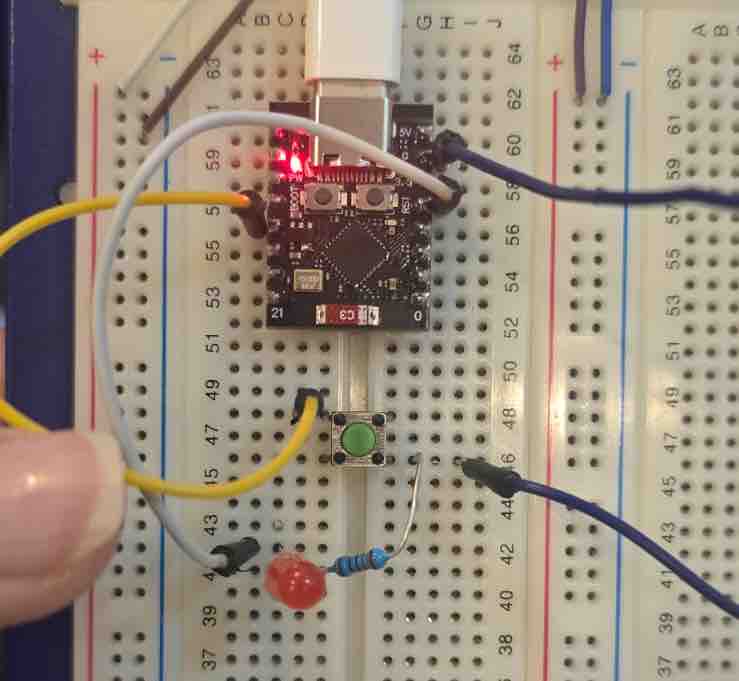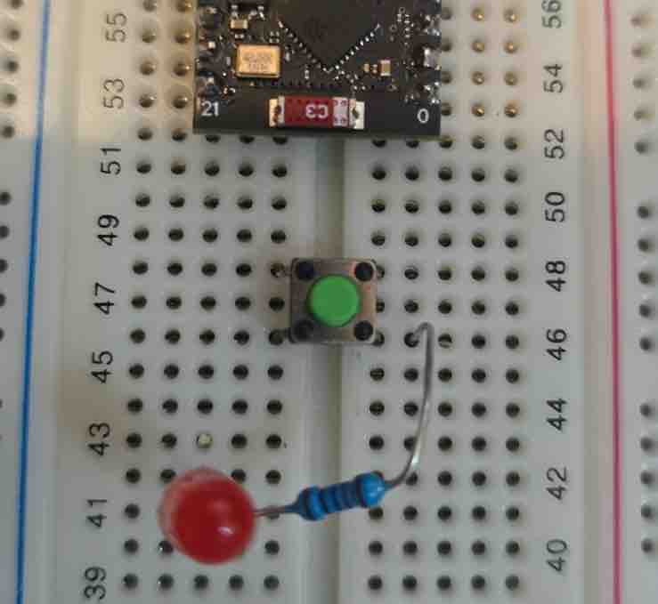 05| I connected the Microcontroller to a breadboard and made sure I do not connect two pins on the same pinline to avoid short curcits. I also added a 4 legs button