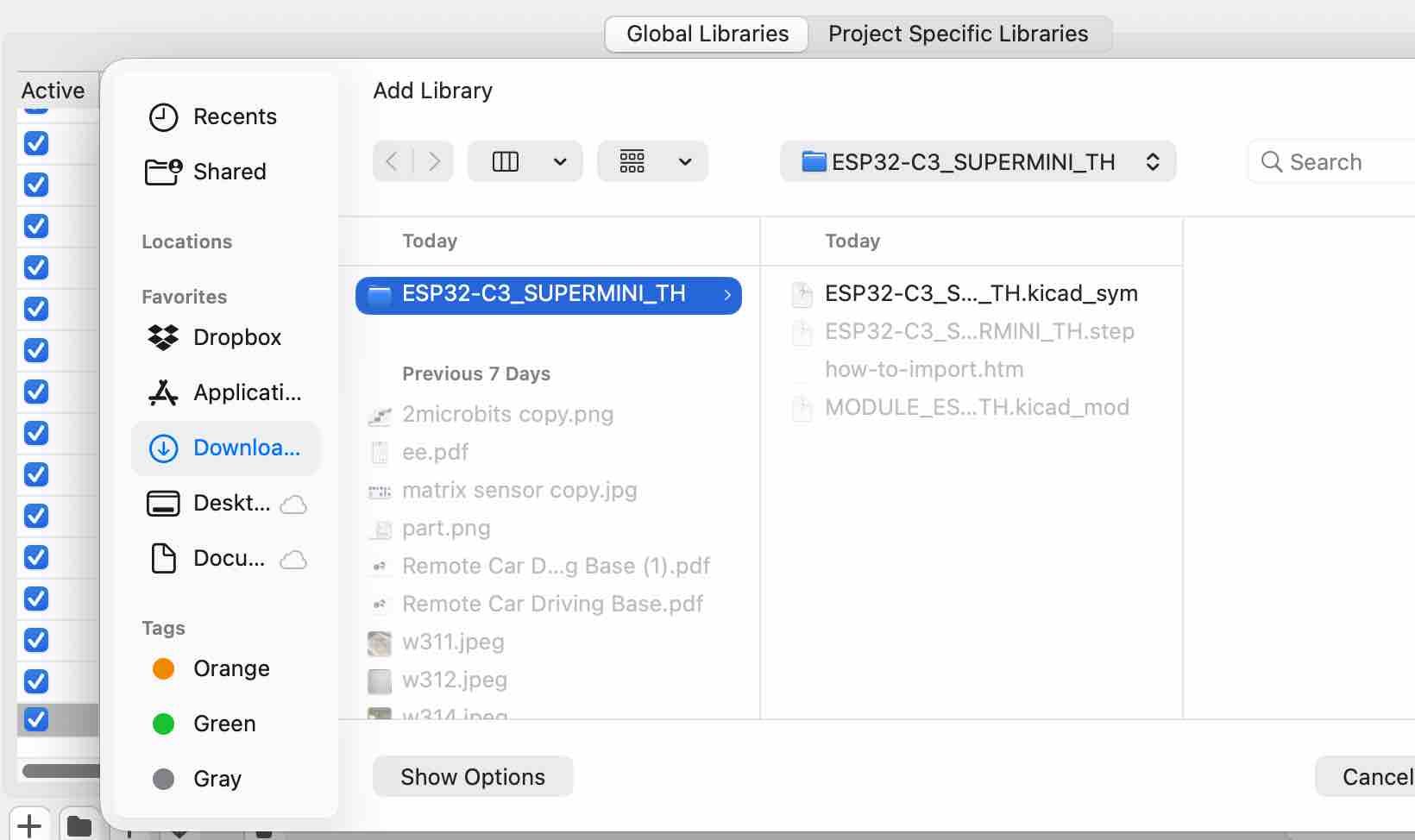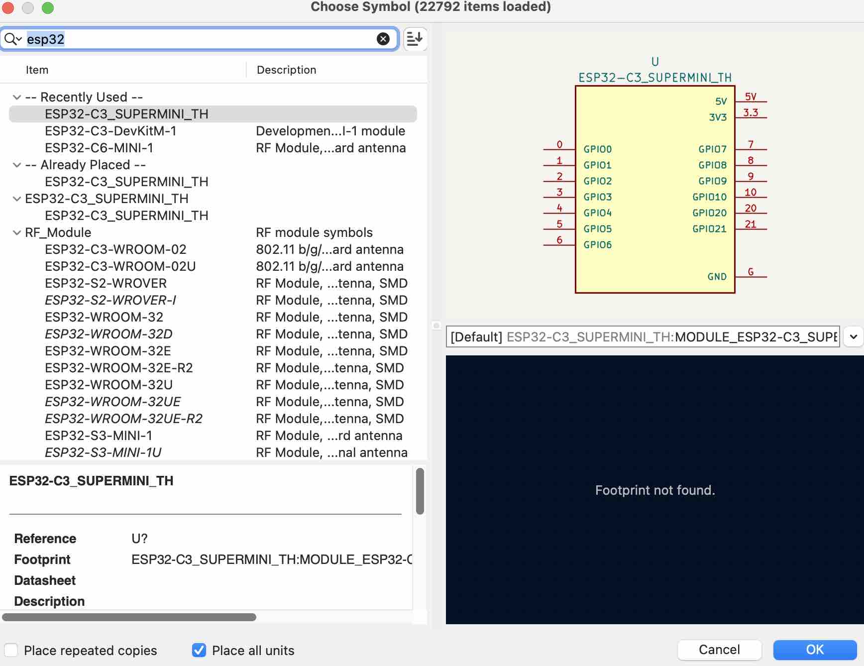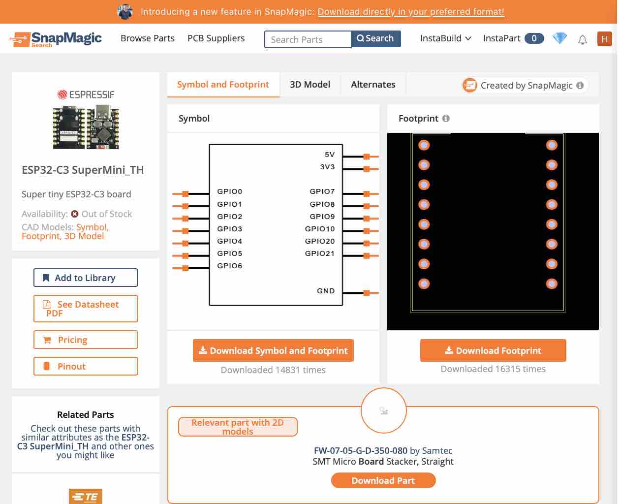 01 | I am using the EPS32 C3 supper mini for my project so I had to get the footprint from Snapeda