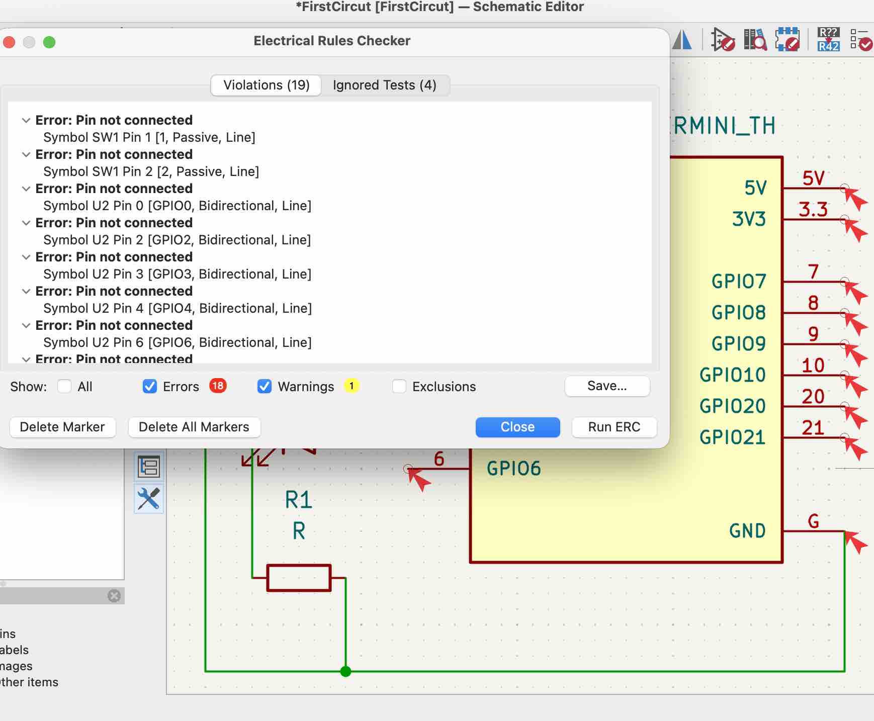 07 | Then I strated to fix the errors, by firt closing the pins which are not connected to anythihng