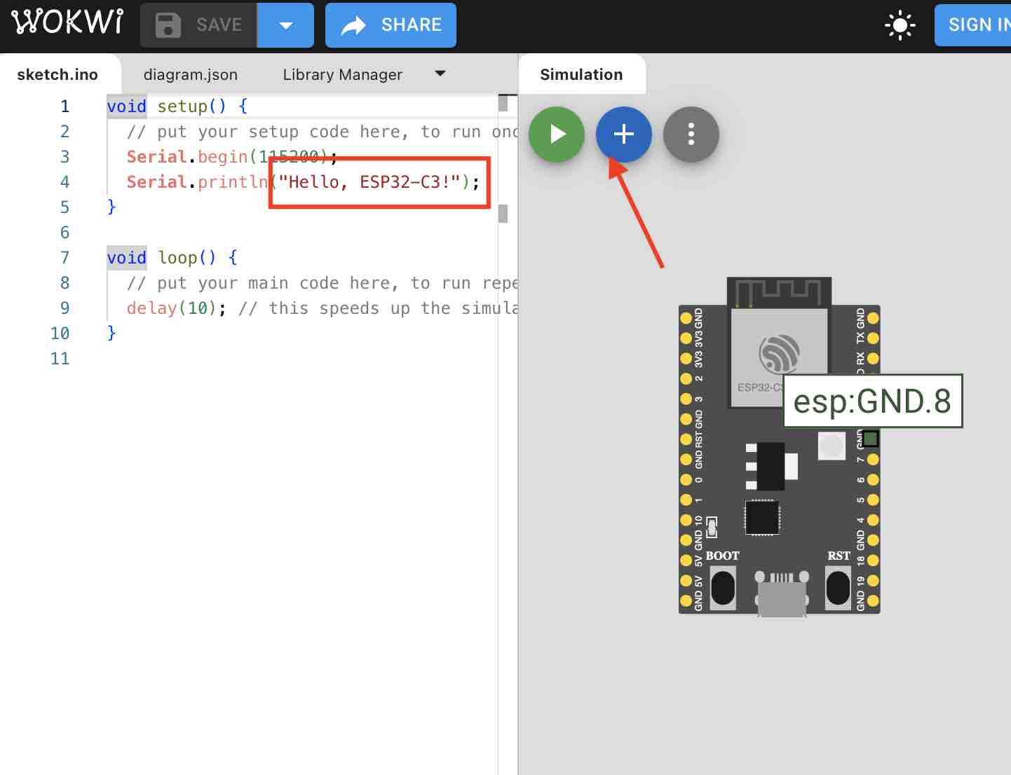 07 | After running the circut, the LED did not turned on. then I changed the code. and run the simulation.