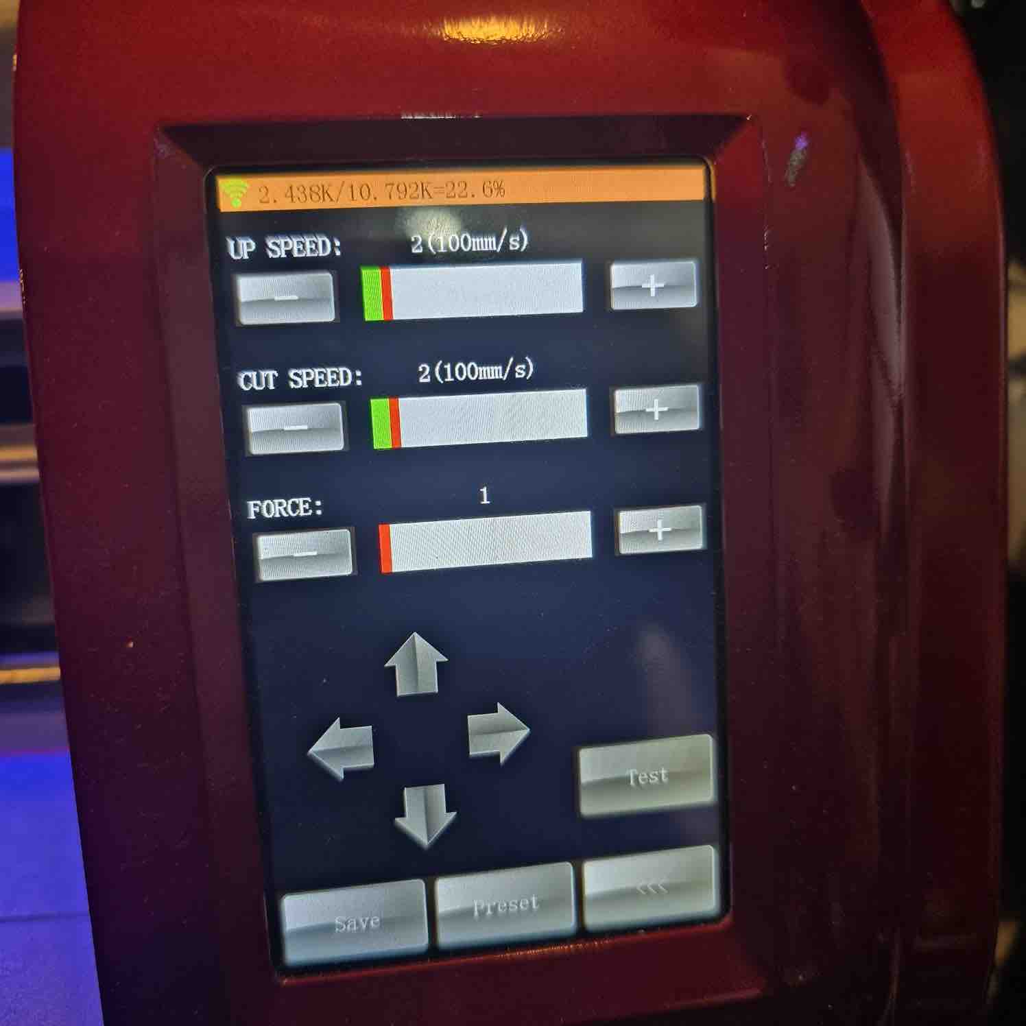 07 | Then I tried to change the settings, maing it cut force the lowest and speed at the lowest