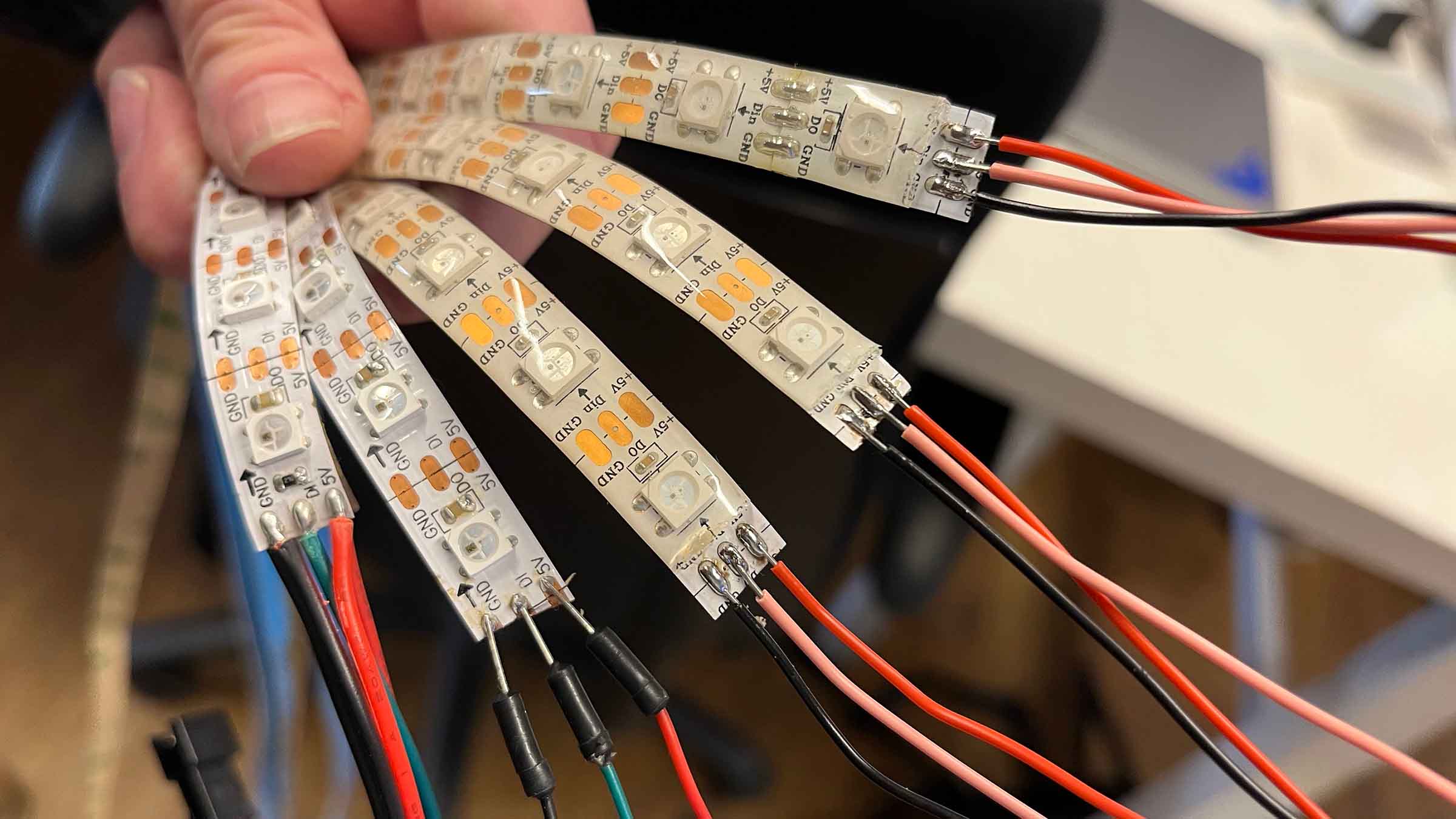 - explain neopixels vs rgb leds, explain data in data out, explain current requirements etc, explain WS2812