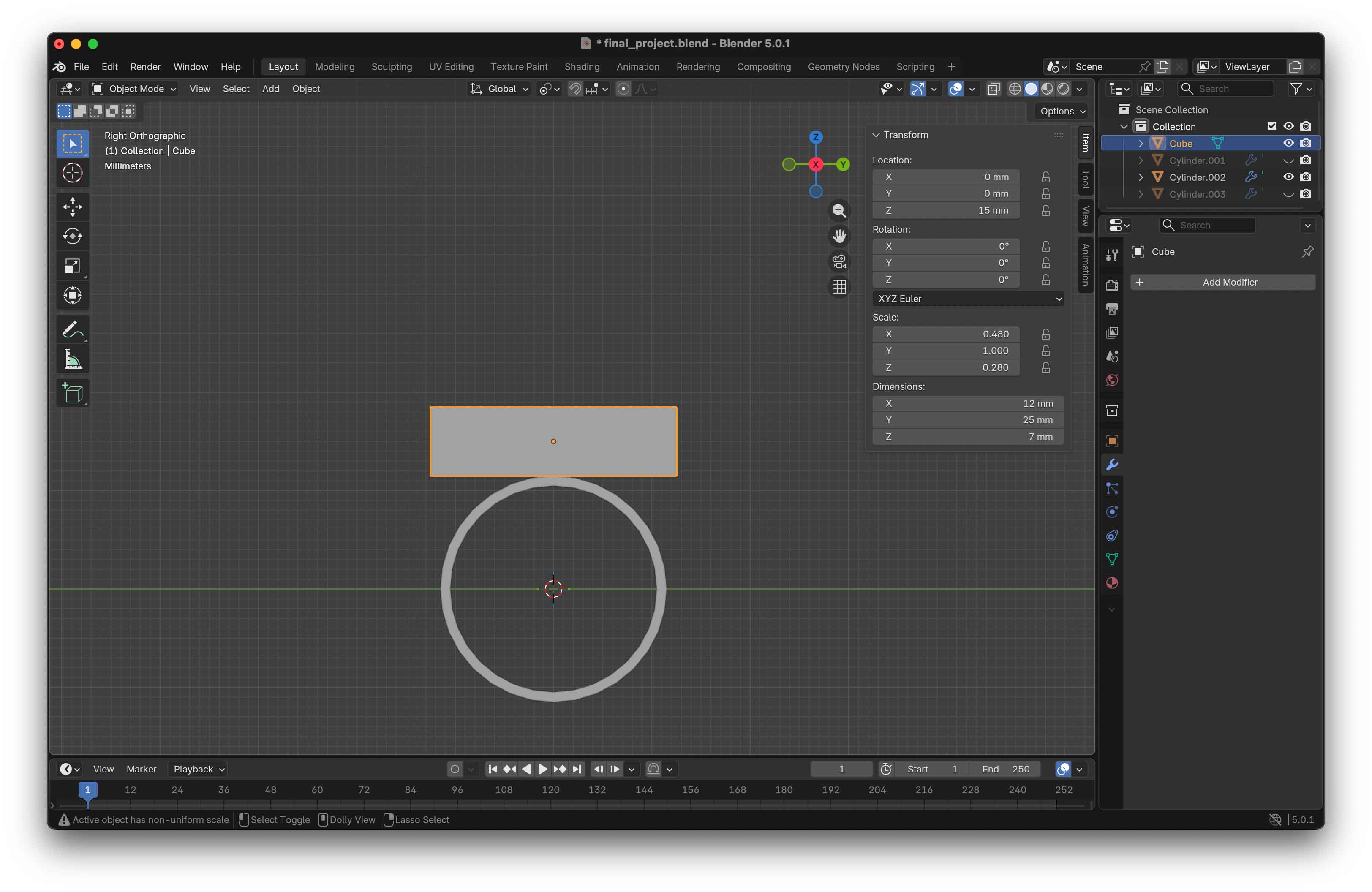 It was recommended in one of the lectures if you're new to 3D modeling to start with a real life object to work with sizes and scaling. For this reason I decided to model the big design inspiration behind my final project: the glow stick ring!