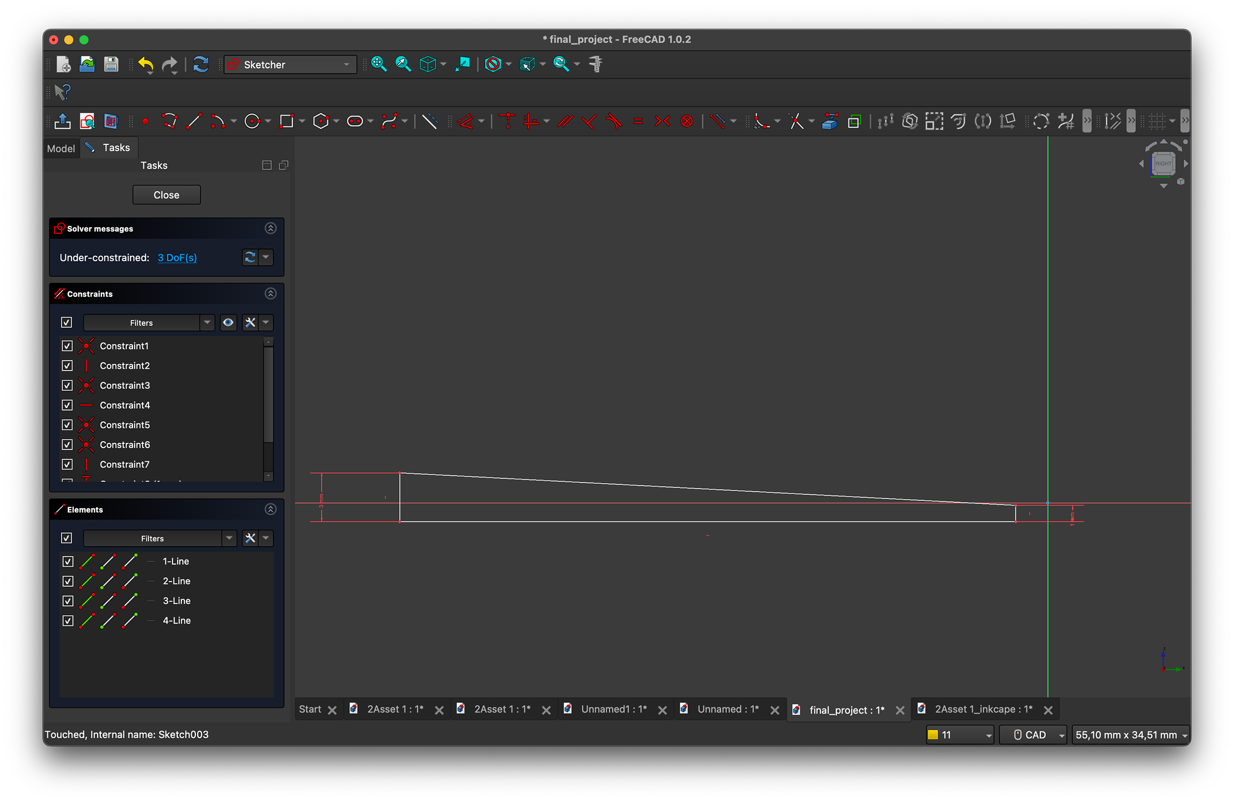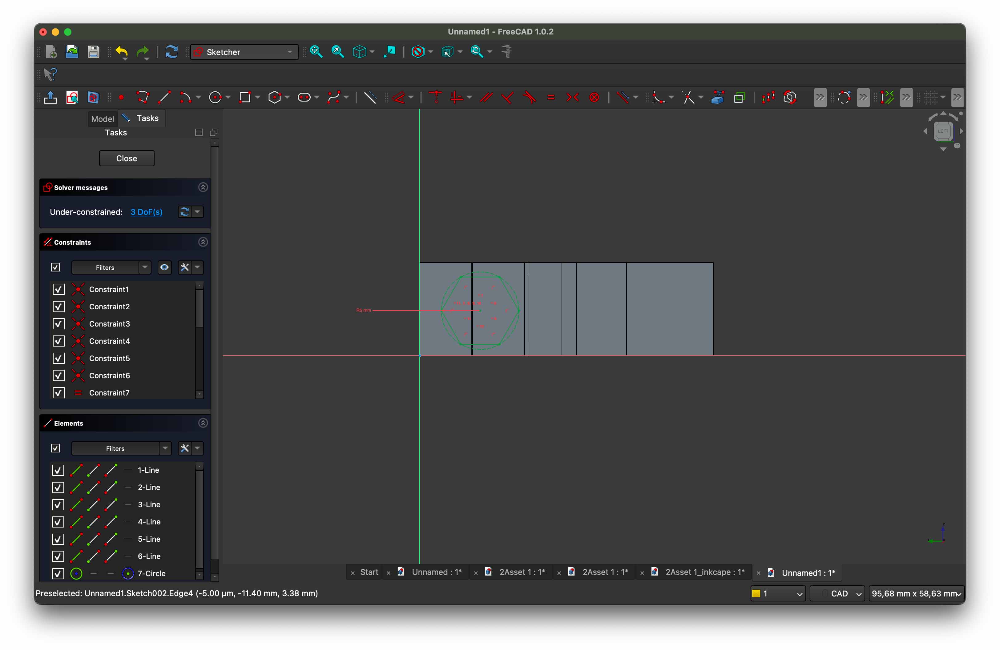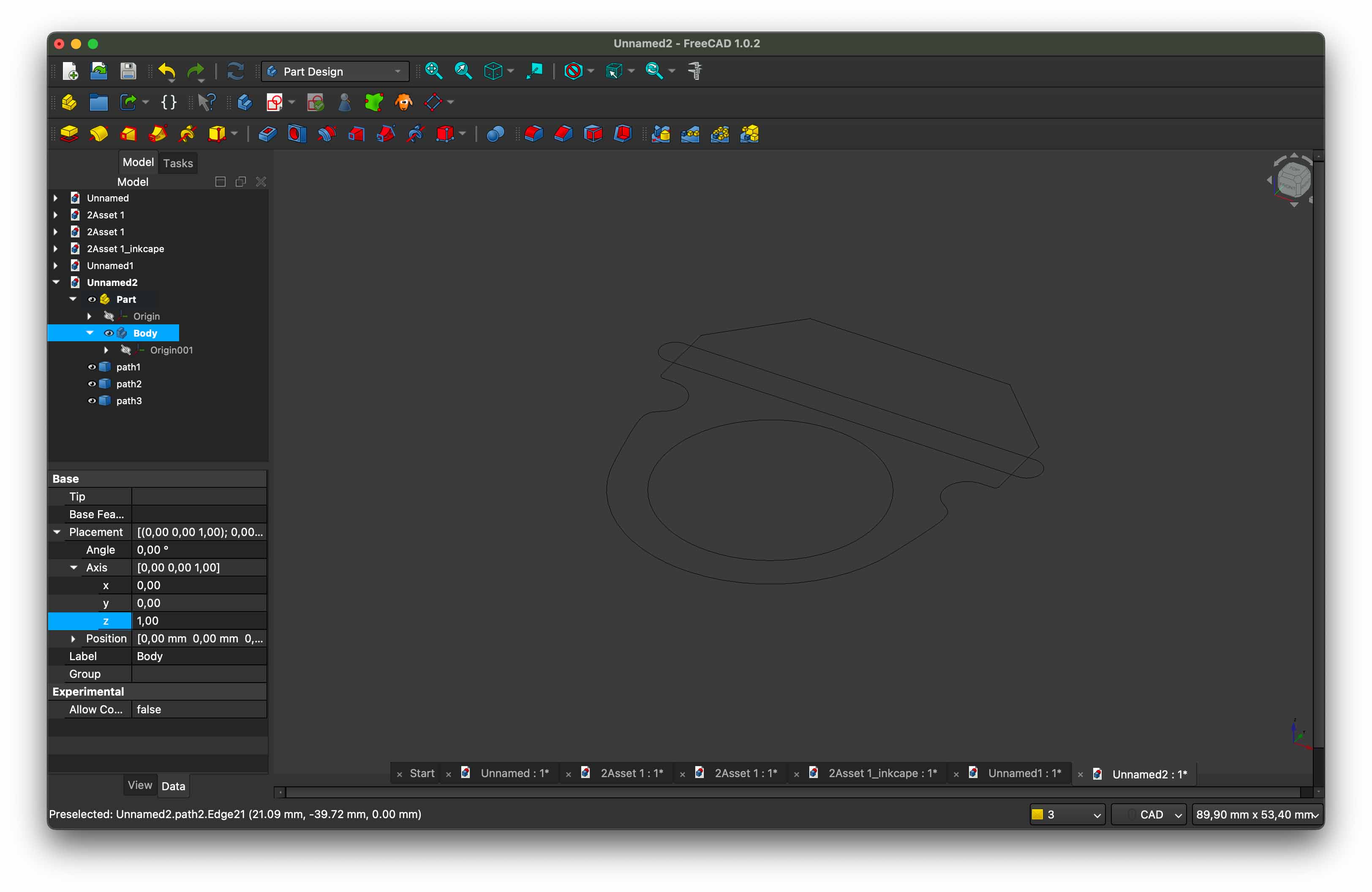 My messy notes export to SVG, so jut for the fun of it I load them into Freecad and explore them in a 3D space. The combination of an endless whiteboard sketching tool with a pencil on the iPad that can quickly be translated into technical drawings in Freecad sounds like a very powerful workflow in the future, but out of scope for this week.