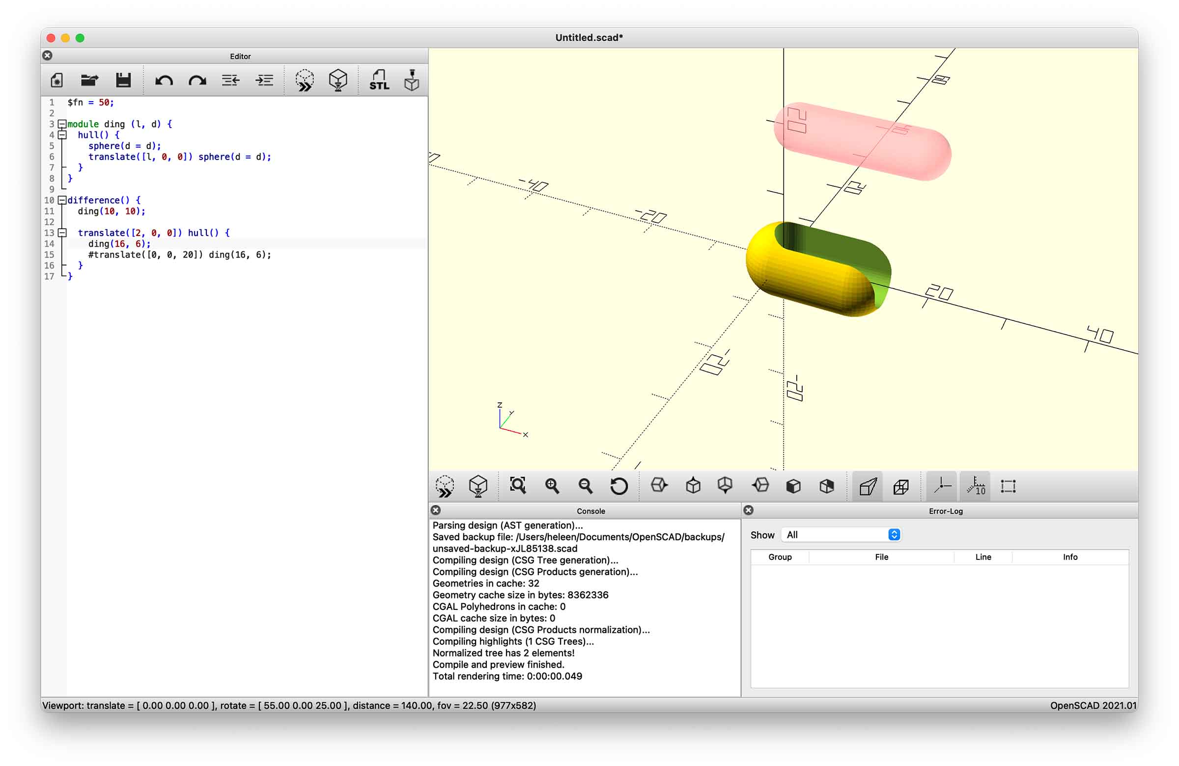 Once that's fixed I load up the model locally and tweak it a bit to make sure I understand. Because all of this is quite familiar to me I decide to not further explore this and focus on 3D modeling software, since that is all new to me. I may look into OpenJSCAD in the future as I'm more comfortable with JavaScript than the C-like syntax OpenSCAD uses.