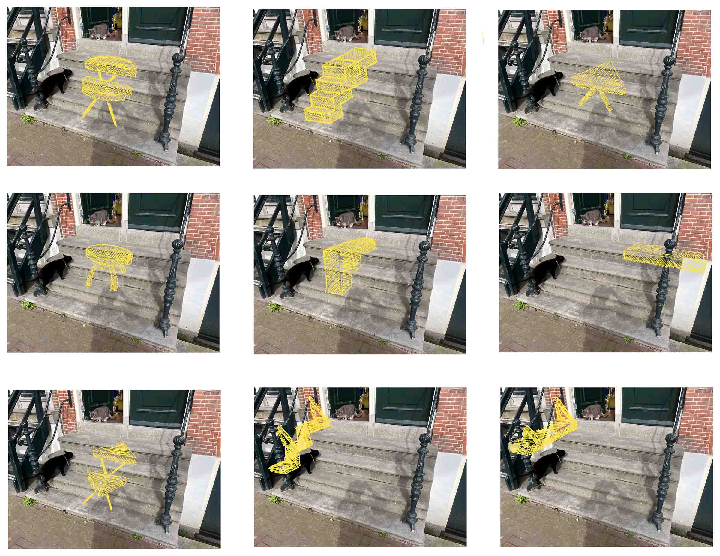 So for this week I decide to try and make a table or bar specifically made for my steps. I start by taking pictures of the steps and making some sketches. There's a few different concepts here, but I like the idea of modeling it after a typical 'terras' table for maximum vibes; the other ideas are cool, but could also feel a bit odd in a semi-public space.