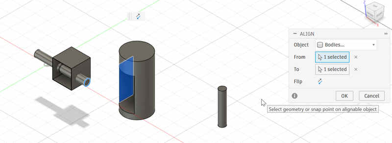 The Align tool was also very helpful when I found that the pipe was positioned too far from the pump case in 3D space. By using Align, I was able to position the pipe correctly relative to the pump. This tool can achieve the same result as the Combine operation when the operation is set to Cut, ensuring that the pipe intersects the pump case accurately for a clean cut.