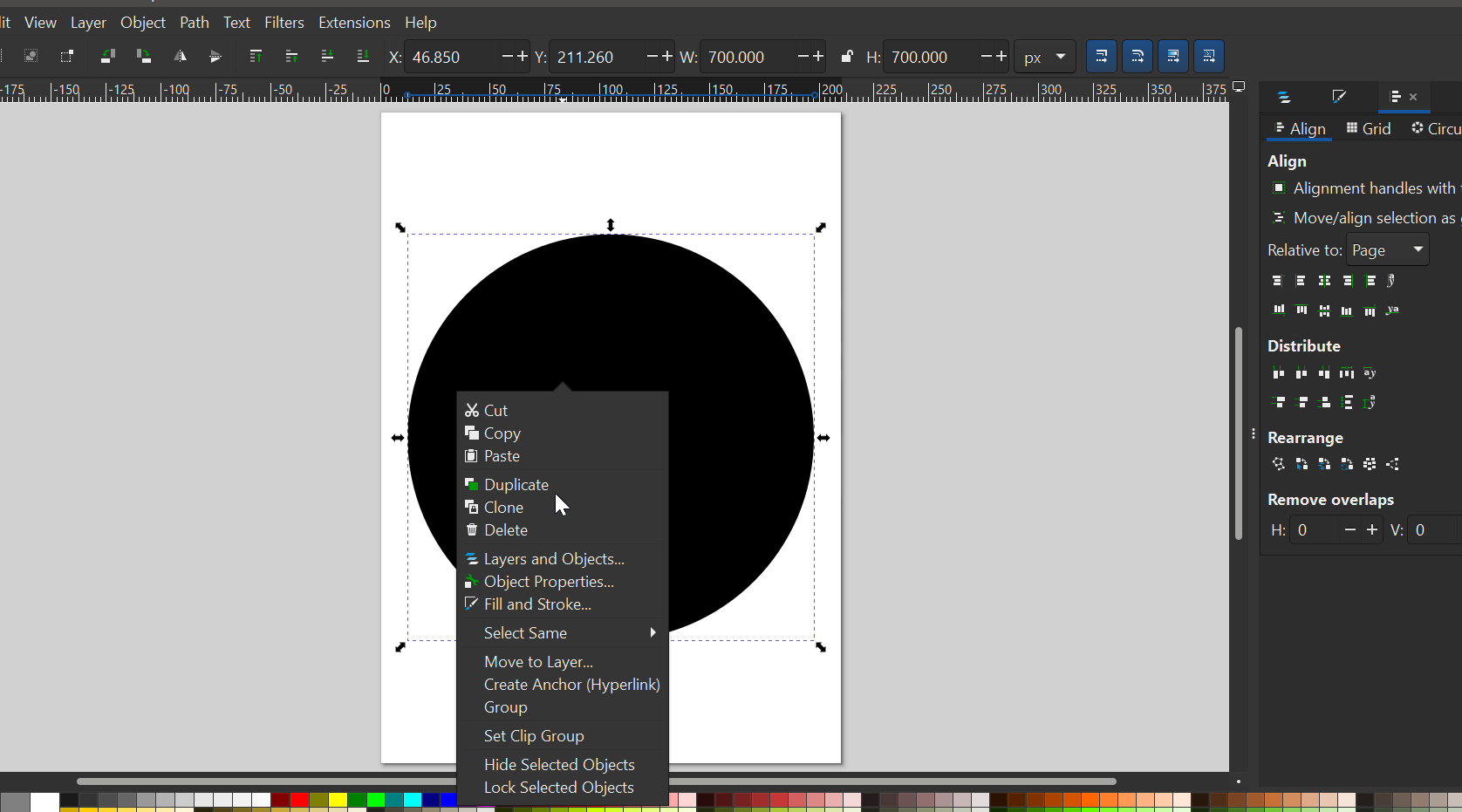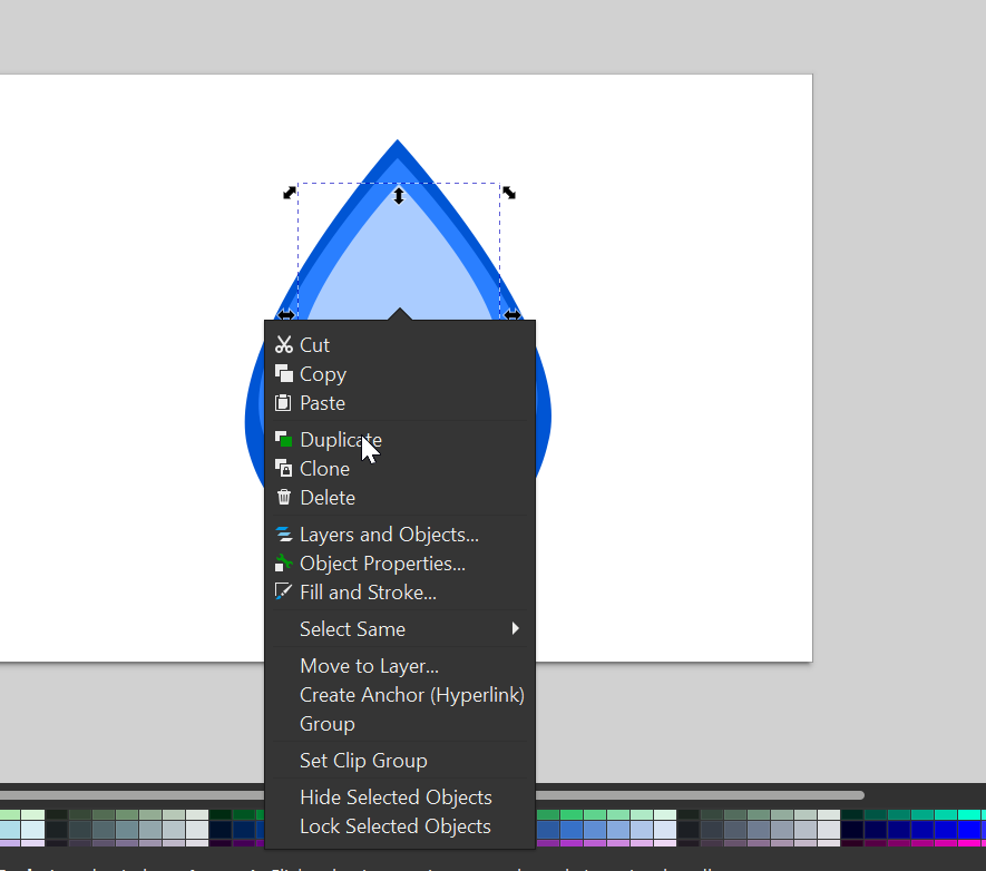From here, under Path, I selected Object to Path to make the shape editable using nodes. I highlighted the three nodes at the bottom, selected Make Selected Nodes Smooth, and dragged them downward to form a smooth curved edge, creating a rounded shape like a sphere.
