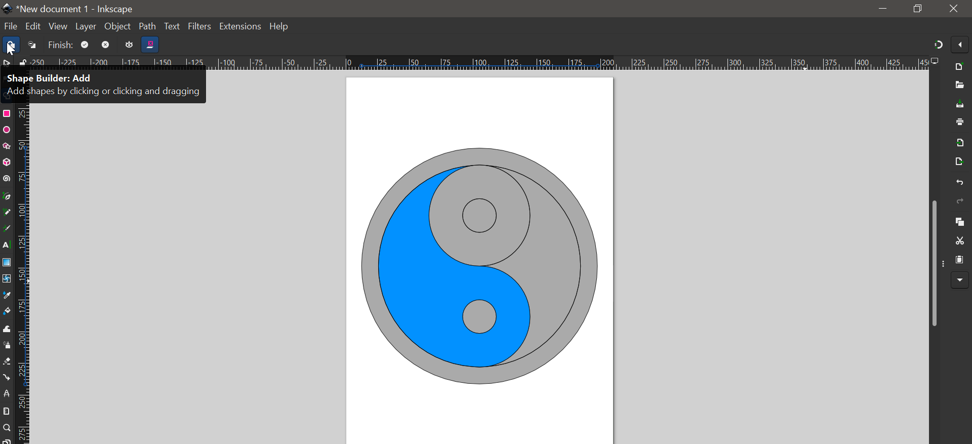 After positioning all the shapes, I used the Shape Builder tool. First, I chose the “Add” (+) option and clicked on the areas that should remain part of the Yin Yang shape.