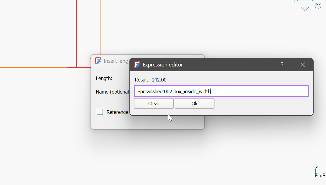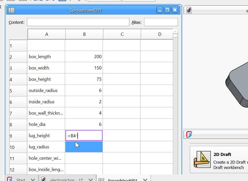 This means the size of the box is now controlled by the spreadsheet. The model automatically updates if I modify a value there.