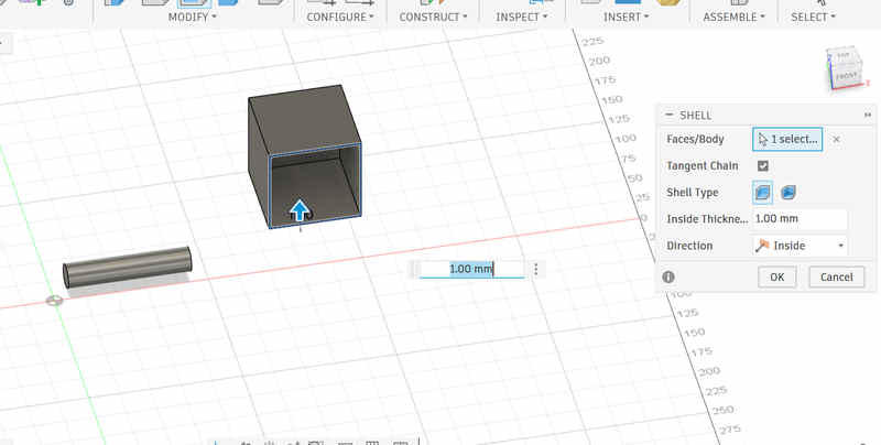 I then removed the upper part of the cylinder using the Shell feature. This hollowed out the cylinder, creating an open space while keeping the walls intact, which is essential for assembling the electrodes and allowing access to the interior of the electrocoagulation unit.