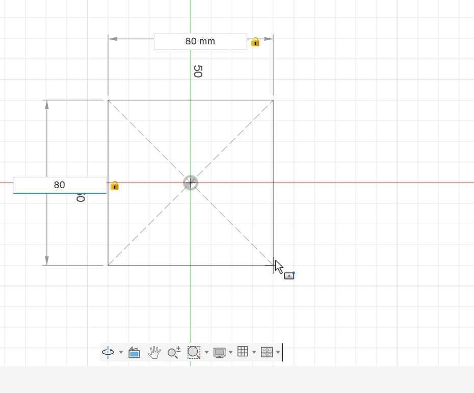I began by creating a sketch on the front plane. Using the center rectangle tool, I drew a square with dimensions of 80 mm by 80 mm. This square formed the base profile of the cube.