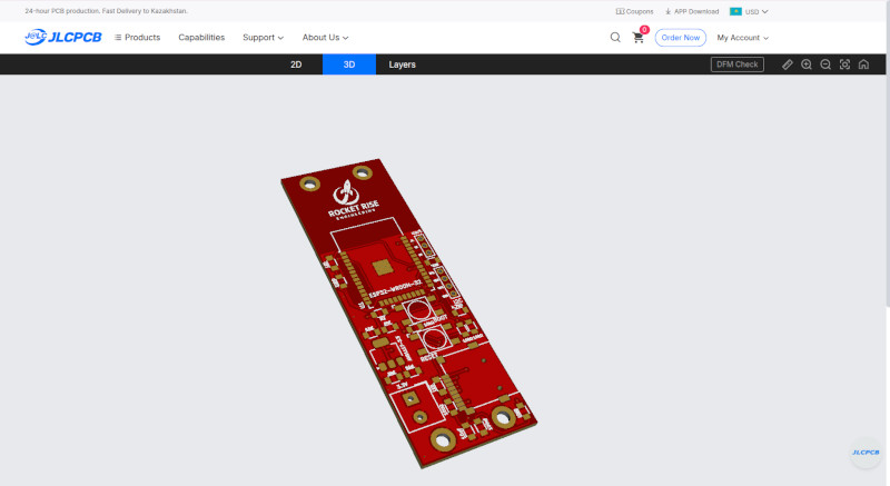 3D rendering on JLC of the board that we could order.