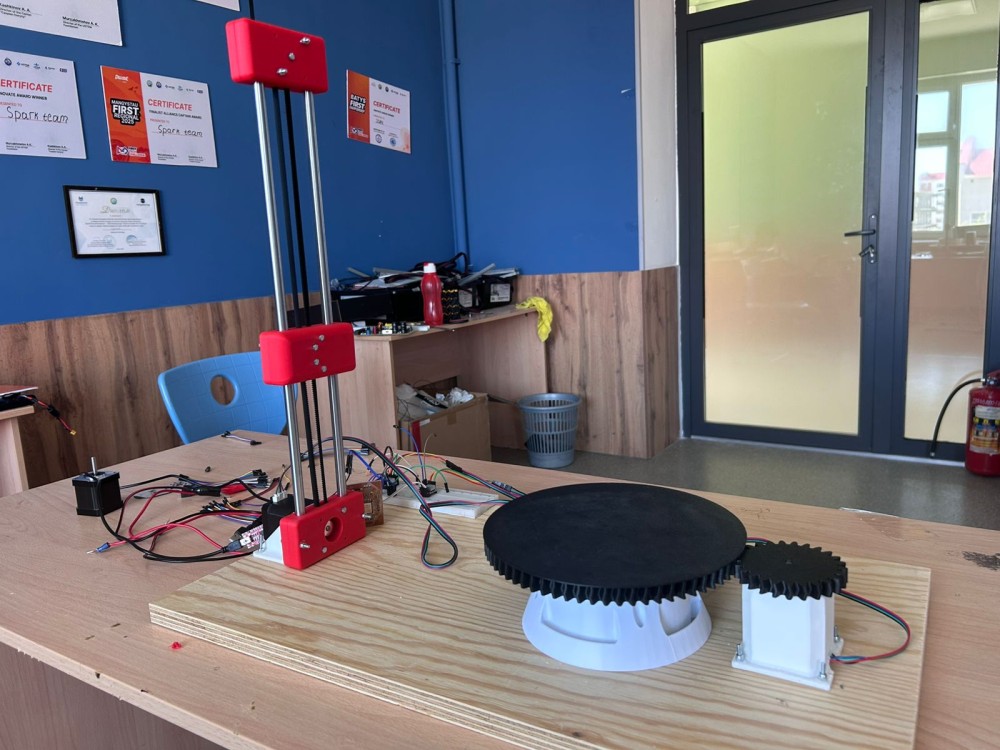 At the current stage, the mechanical part of the 3D scanner is fully completed and physically assembled. The system has been tested, and all main mechanical subsystems are working together as intended, including the rotating platform, base structure, motor mounting, and camera support system.