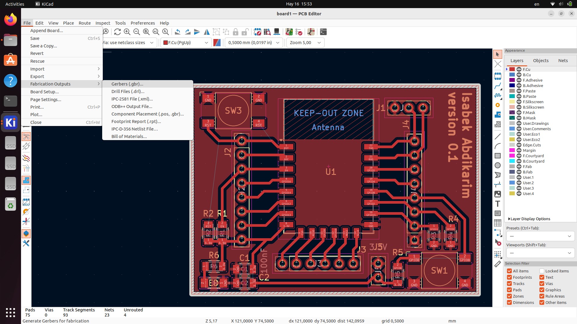 - Download all Gerber files (drill, traces, outline) and prepare them for manufacturing.