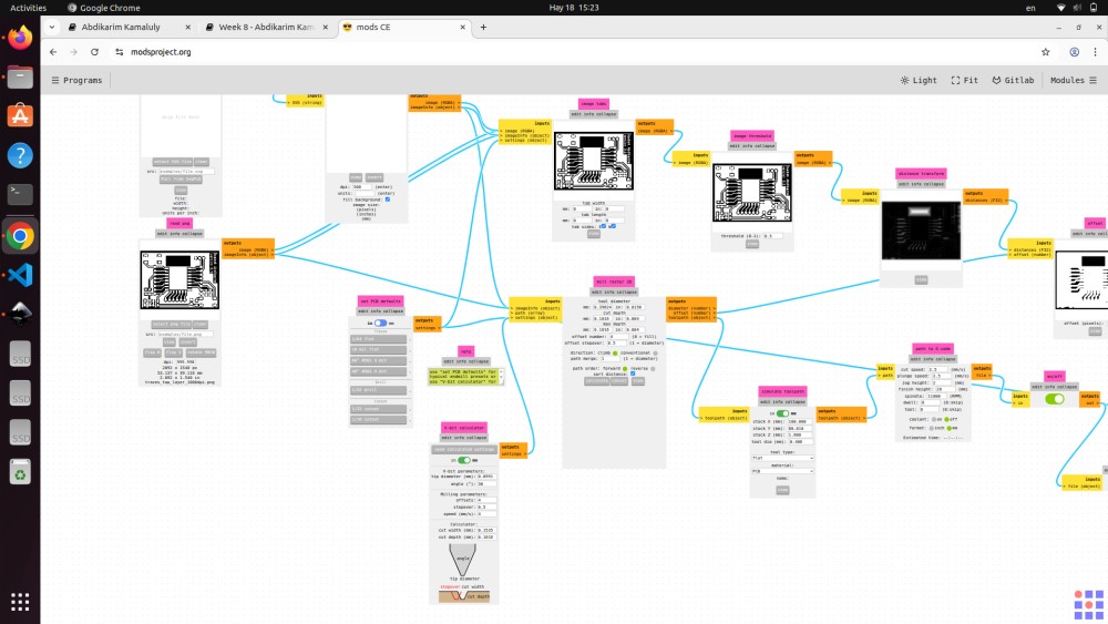 During the Electronics Production week, I learned how to manufacture a printed circuit board (PCB). I designed my board and used an SRM-20 milling machine to cut it from a PSB board. The process included preparing the design files, setting up the machine, and carefully milling the traces and outline. This week helped me understand how digital designs become physical hardware.