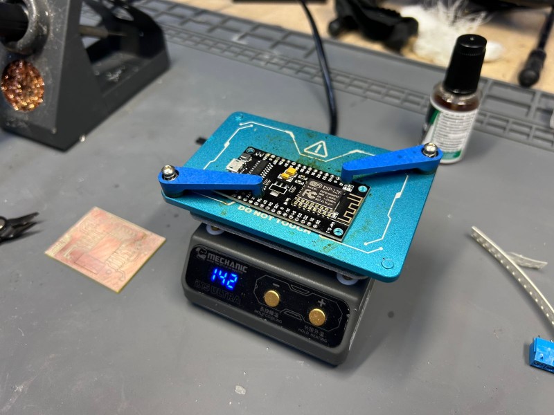 - After soldering, the PCB is fully assembled and visually complete.