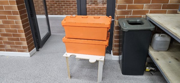 "After finishing the assembly, I conducted a stability test to see how much weight the table could handle. I placed a 40 kg load on top of it. Even with this heavy weight, the table remained completely stable and did not wobble. This proves that the 'puzzle' legs and the 10mm plywood are strong enough to be used as a real workstation."