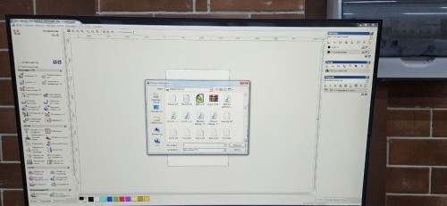 Turning pixels into sawdust! Before pressing "Start", I had to calibrate the machine to the physical material.