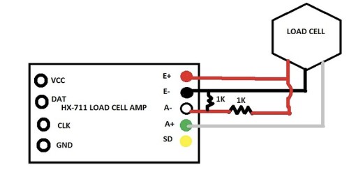 - Pinout & Wiring The HX711 expects a 4-pin full-bridge. To make the 3-pin sensor work, I created a custom pinout using two 1k resistors to complete the Wheatstone bridge.